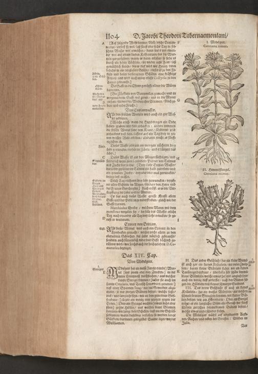 D. Jacobi Theodori Tabernaemontani, Neu vollkommen Kräuter-Buch : Darinnen Uber 3000. Kräuter/ mit schönen und kunstlichen Figuren/ auch deren Underscheid und Würckung/ samt ihren Namen in mancherley Sprachen/ beschrieben: Desgleichen auch/ wie dieselbige in allerhand Kranckheiten/ beyde der Menschen und des Viehs/ sollen angewendet und gebraucht werden/ angezeigt wird. Erstlichen durch Casparum Bauhinum D. und Profess. Basil. mit vielen neuen Figuren/ nutzlichen Artzneyen/ und anderem/ mit sonderem Fleis gebesseret/ Zum Andern Durch Hieronymum Bauhinum D. und Profess. Basil. mit sehr nutzlichen Marginalien, Synonimis, neuen Registeren und anderem vermehrt
