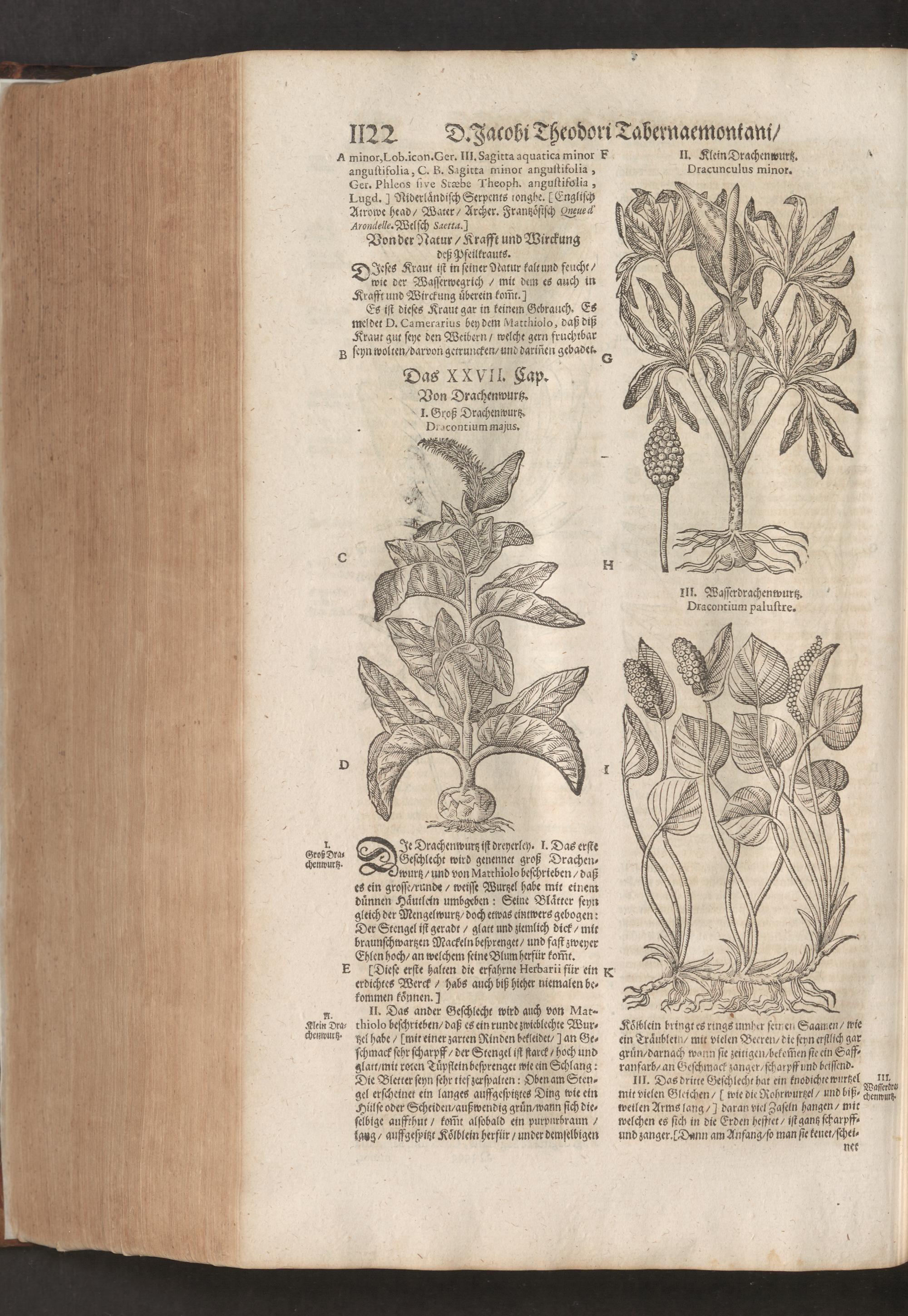 D. Jacobi Theodori Tabernaemontani, Neu vollkommen Kräuter-Buch : Darinnen Uber 3000. Kräuter/ mit schönen und kunstlichen Figuren/ auch deren Underscheid und Würckung/ samt ihren Namen in mancherley Sprachen/ beschrieben: Desgleichen auch/ wie dieselbige in allerhand Kranckheiten/ beyde der Menschen und des Viehs/ sollen angewendet und gebraucht werden/ angezeigt wird. Erstlichen durch Casparum Bauhinum D. und Profess. Basil. mit vielen neuen Figuren/ nutzlichen Artzneyen/ und anderem/ mit sonderem Fleis gebesseret/ Zum Andern Durch Hieronymum Bauhinum D. und Profess. Basil. mit sehr nutzlichen Marginalien, Synonimis, neuen Registeren und anderem vermehrt