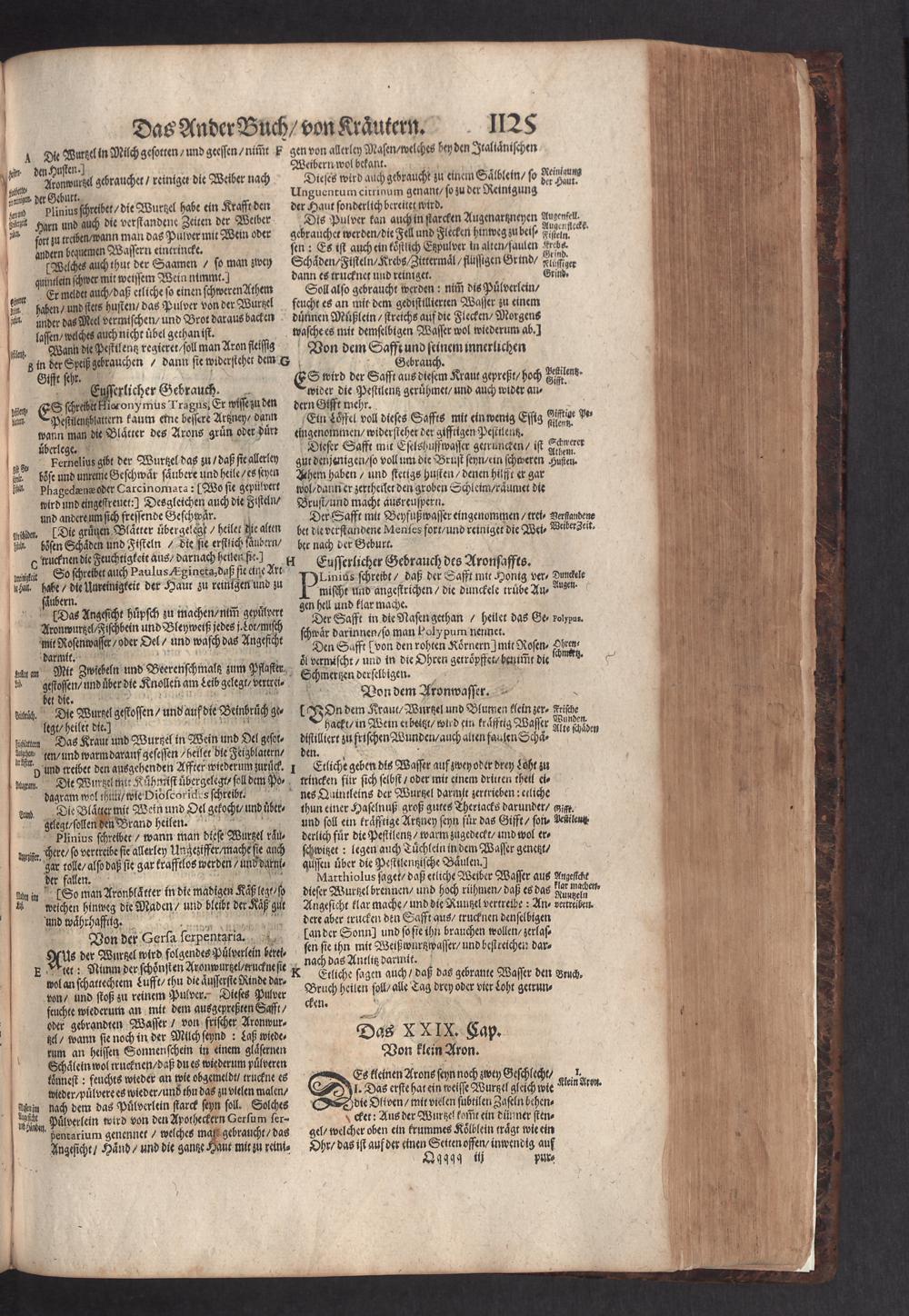 D. Jacobi Theodori Tabernaemontani, Neu vollkommen Kräuter-Buch : Darinnen Uber 3000. Kräuter/ mit schönen und kunstlichen Figuren/ auch deren Underscheid und Würckung/ samt ihren Namen in mancherley Sprachen/ beschrieben: Desgleichen auch/ wie dieselbige in allerhand Kranckheiten/ beyde der Menschen und des Viehs/ sollen angewendet und gebraucht werden/ angezeigt wird. Erstlichen durch Casparum Bauhinum D. und Profess. Basil. mit vielen neuen Figuren/ nutzlichen Artzneyen/ und anderem/ mit sonderem Fleis gebesseret/ Zum Andern Durch Hieronymum Bauhinum D. und Profess. Basil. mit sehr nutzlichen Marginalien, Synonimis, neuen Registeren und anderem vermehrt