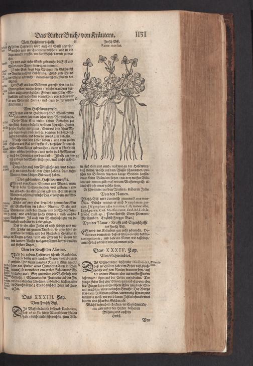 D. Jacobi Theodori Tabernaemontani, Neu vollkommen Kräuter-Buch : Darinnen Uber 3000. Kräuter/ mit schönen und kunstlichen Figuren/ auch deren Underscheid und Würckung/ samt ihren Namen in mancherley Sprachen/ beschrieben: Desgleichen auch/ wie dieselbige in allerhand Kranckheiten/ beyde der Menschen und des Viehs/ sollen angewendet und gebraucht werden/ angezeigt wird. Erstlichen durch Casparum Bauhinum D. und Profess. Basil. mit vielen neuen Figuren/ nutzlichen Artzneyen/ und anderem/ mit sonderem Fleis gebesseret/ Zum Andern Durch Hieronymum Bauhinum D. und Profess. Basil. mit sehr nutzlichen Marginalien, Synonimis, neuen Registeren und anderem vermehrt