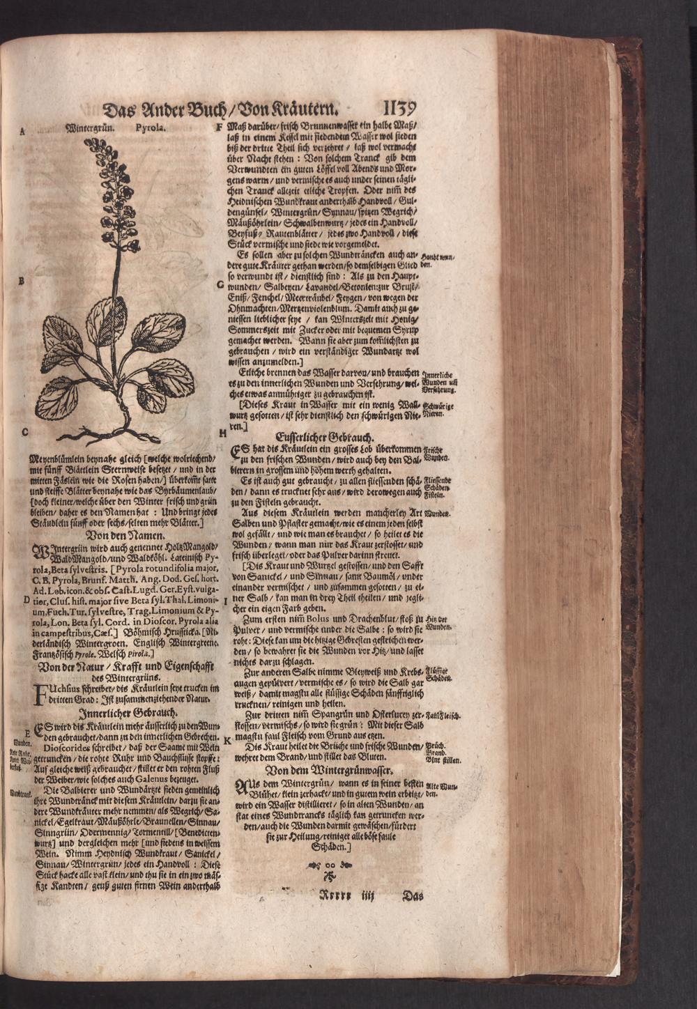 D. Jacobi Theodori Tabernaemontani, Neu vollkommen Kräuter-Buch : Darinnen Uber 3000. Kräuter/ mit schönen und kunstlichen Figuren/ auch deren Underscheid und Würckung/ samt ihren Namen in mancherley Sprachen/ beschrieben: Desgleichen auch/ wie dieselbige in allerhand Kranckheiten/ beyde der Menschen und des Viehs/ sollen angewendet und gebraucht werden/ angezeigt wird. Erstlichen durch Casparum Bauhinum D. und Profess. Basil. mit vielen neuen Figuren/ nutzlichen Artzneyen/ und anderem/ mit sonderem Fleis gebesseret/ Zum Andern Durch Hieronymum Bauhinum D. und Profess. Basil. mit sehr nutzlichen Marginalien, Synonimis, neuen Registeren und anderem vermehrt