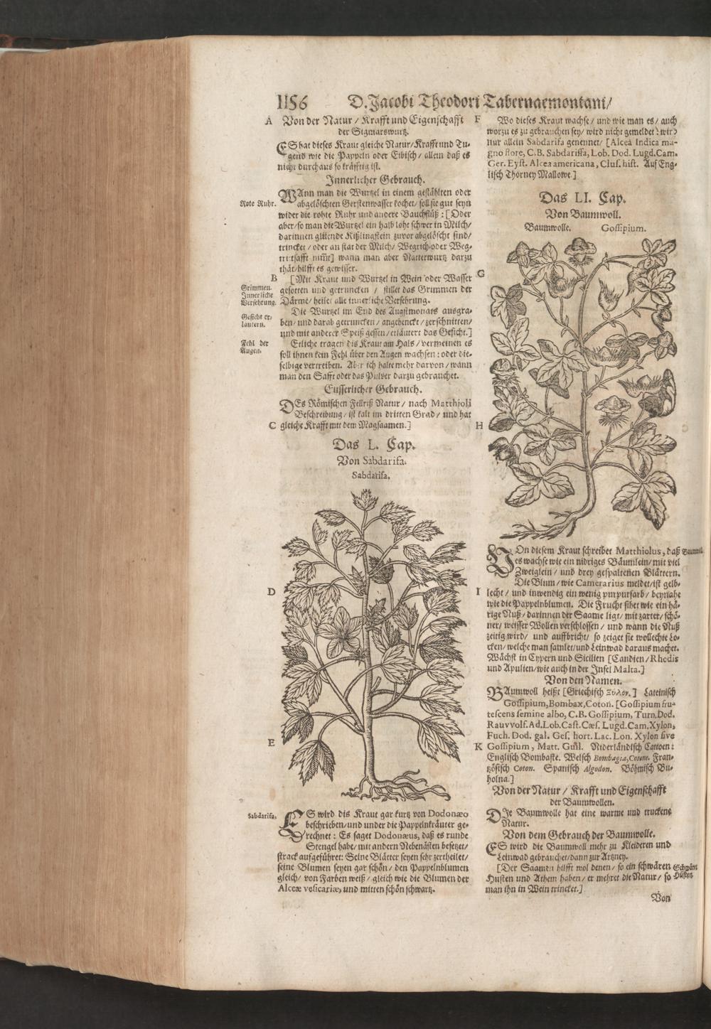 D. Jacobi Theodori Tabernaemontani, Neu vollkommen Kräuter-Buch : Darinnen Uber 3000. Kräuter/ mit schönen und kunstlichen Figuren/ auch deren Underscheid und Würckung/ samt ihren Namen in mancherley Sprachen/ beschrieben: Desgleichen auch/ wie dieselbige in allerhand Kranckheiten/ beyde der Menschen und des Viehs/ sollen angewendet und gebraucht werden/ angezeigt wird. Erstlichen durch Casparum Bauhinum D. und Profess. Basil. mit vielen neuen Figuren/ nutzlichen Artzneyen/ und anderem/ mit sonderem Fleis gebesseret/ Zum Andern Durch Hieronymum Bauhinum D. und Profess. Basil. mit sehr nutzlichen Marginalien, Synonimis, neuen Registeren und anderem vermehrt
