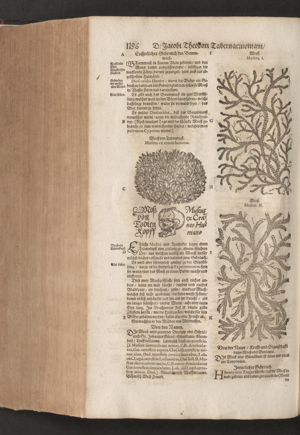 D. Jacobi Theodori Tabernaemontani, Neu vollkommen Kräuter-Buch : Darinnen Uber 3000. Kräuter/ mit schönen und kunstlichen Figuren/ auch deren Underscheid und Würckung/ samt ihren Namen in mancherley Sprachen/ beschrieben: Desgleichen auch/ wie dieselbige in allerhand Kranckheiten/ beyde der Menschen und des Viehs/ sollen angewendet und gebraucht werden/ angezeigt wird. Erstlichen durch Casparum Bauhinum D. und Profess. Basil. mit vielen neuen Figuren/ nutzlichen Artzneyen/ und anderem/ mit sonderem Fleis gebesseret/ Zum Andern Durch Hieronymum Bauhinum D. und Profess. Basil. mit sehr nutzlichen Marginalien, Synonimis, neuen Registeren und anderem vermehrt