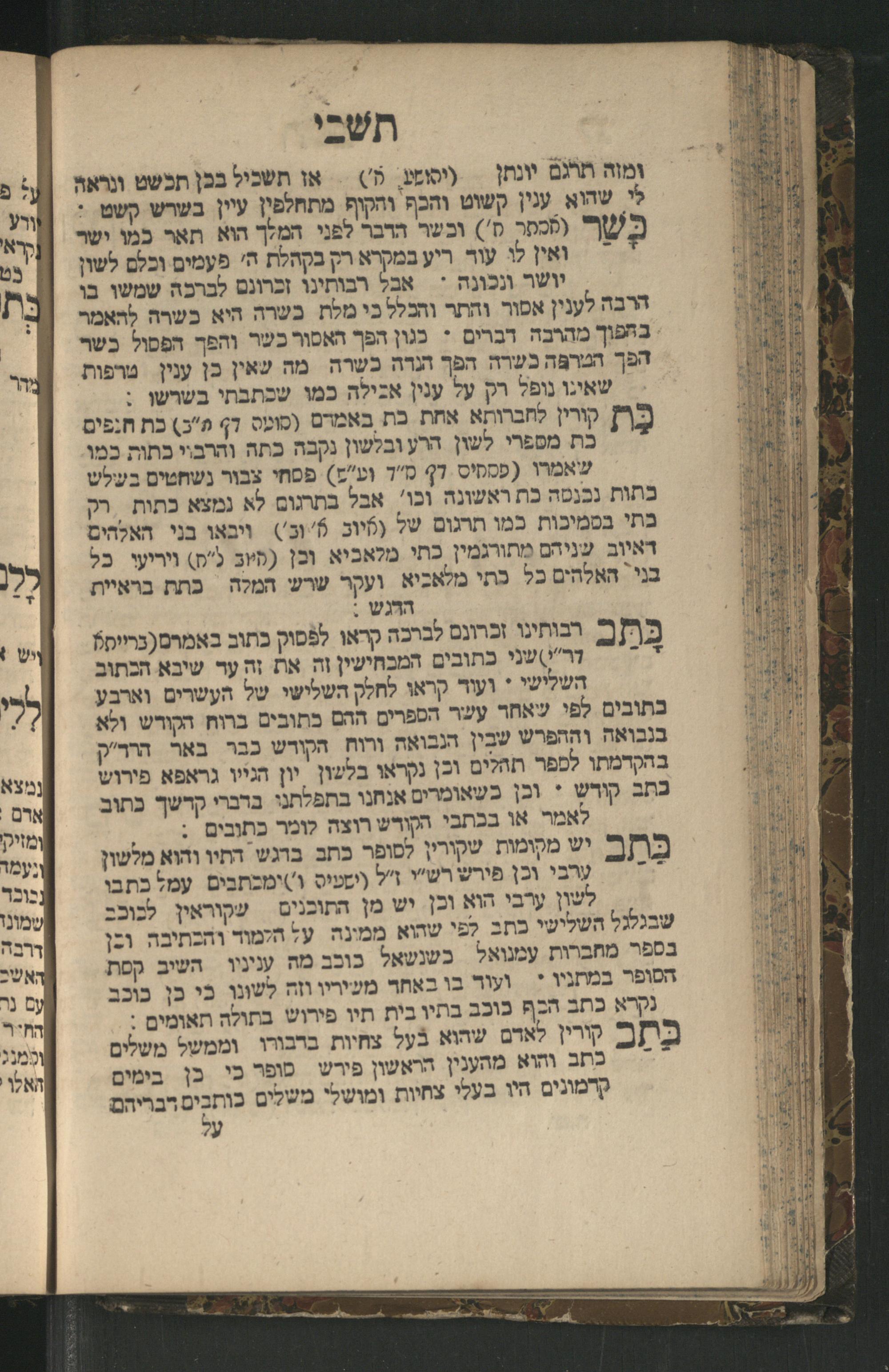 Sefer ha-Tishbi : ha-sefer ha-zeh shorashaṿ be-minyan Tishbi, ṿe-rubam shorashim asher mi-lefanim enam meforashim ... ba-Talmud u-Midrashim ... / mi-kevod ha-rav ha-medaḳdeḳ ... Eli. z.l. ṿe-niḳra ba-shem ṭov R. Eli Baḥur z.l. ... ṿe-ʿatah naʿaśeh be-yeter sheʾat ha-rishonim be-tiḳun ha-marʾeh meḳomot ...ספר התשבי : הספר הזה שרשיו במנין תשבי, ורובם שרשים אשר מלפנים אינם מפורשים בתלמוד ומדרשים ... / מכבוד כבוד הרב המדקדק ... אלי׳ ז״ל ונקרא בשם טוב ר׳ אלי בחור ז״ל ... ועתה נעזה ביתר שאת על הראשונים בתקון המראה מקומת ...