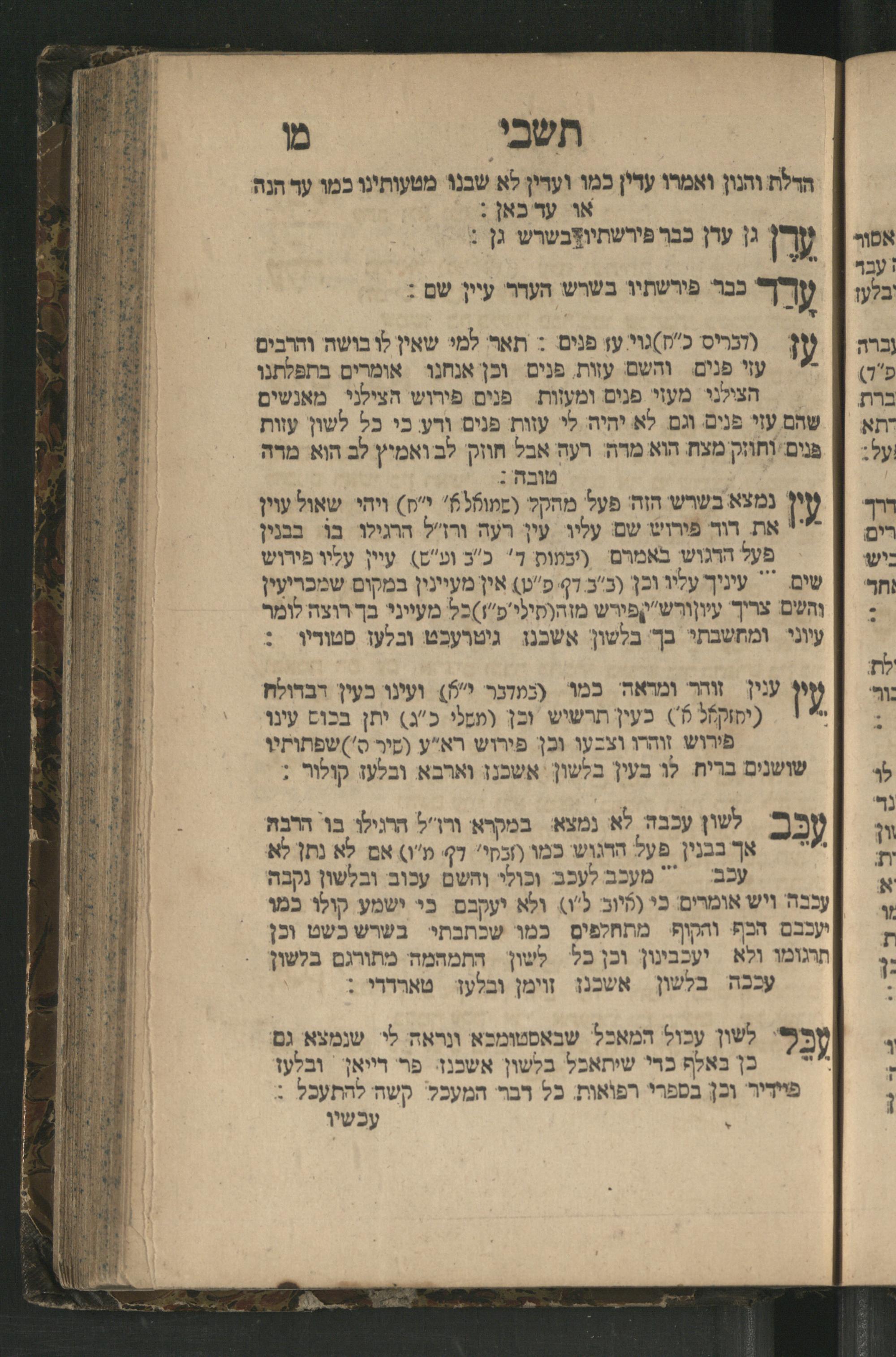 Sefer ha-Tishbi : ha-sefer ha-zeh shorashaṿ be-minyan Tishbi, ṿe-rubam shorashim asher mi-lefanim enam meforashim ... ba-Talmud u-Midrashim ... / mi-kevod ha-rav ha-medaḳdeḳ ... Eli. z.l. ṿe-niḳra ba-shem ṭov R. Eli Baḥur z.l. ... ṿe-ʿatah naʿaśeh be-yeter sheʾat ha-rishonim be-tiḳun ha-marʾeh meḳomot ...ספר התשבי : הספר הזה שרשיו במנין תשבי, ורובם שרשים אשר מלפנים אינם מפורשים בתלמוד ומדרשים ... / מכבוד כבוד הרב המדקדק ... אלי׳ ז״ל ונקרא בשם טוב ר׳ אלי בחור ז״ל ... ועתה נעזה ביתר שאת על הראשונים בתקון המראה מקומת ...