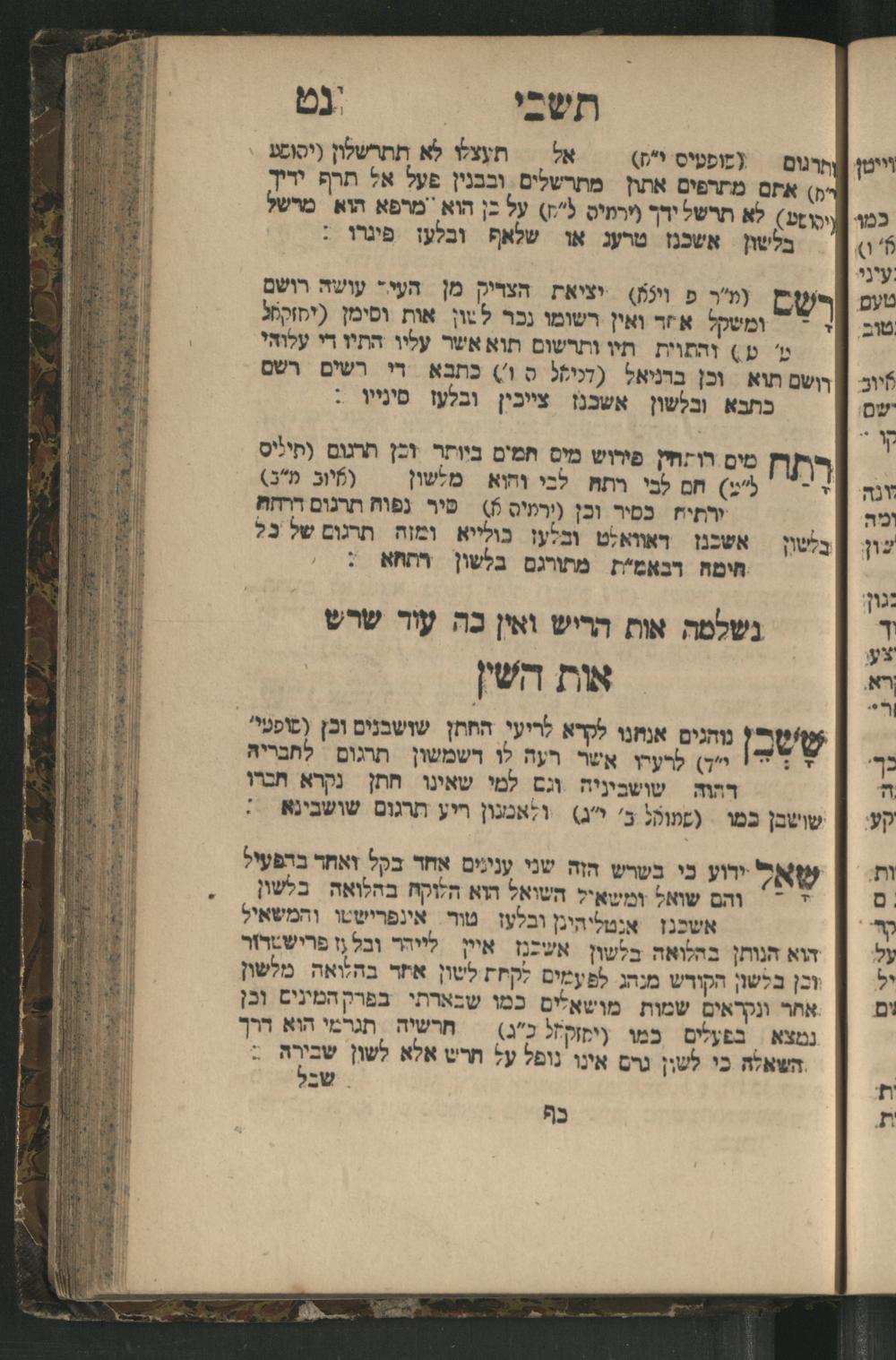 Sefer ha-Tishbi : ha-sefer ha-zeh shorashaṿ be-minyan Tishbi, ṿe-rubam shorashim asher mi-lefanim enam meforashim ... ba-Talmud u-Midrashim ... / mi-kevod ha-rav ha-medaḳdeḳ ... Eli. z.l. ṿe-niḳra ba-shem ṭov R. Eli Baḥur z.l. ... ṿe-ʿatah naʿaśeh be-yeter sheʾat ha-rishonim be-tiḳun ha-marʾeh meḳomot ...ספר התשבי : הספר הזה שרשיו במנין תשבי, ורובם שרשים אשר מלפנים אינם מפורשים בתלמוד ומדרשים ... / מכבוד כבוד הרב המדקדק ... אלי׳ ז״ל ונקרא בשם טוב ר׳ אלי בחור ז״ל ... ועתה נעזה ביתר שאת על הראשונים בתקון המראה מקומת ...