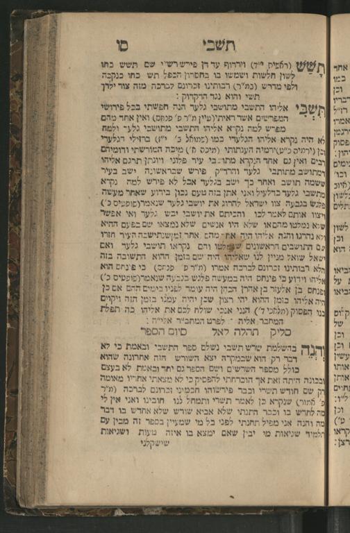 Sefer ha-Tishbi : ha-sefer ha-zeh shorashaṿ be-minyan Tishbi, ṿe-rubam shorashim asher mi-lefanim enam meforashim ... ba-Talmud u-Midrashim ... / mi-kevod ha-rav ha-medaḳdeḳ ... Eli. z.l. ṿe-niḳra ba-shem ṭov R. Eli Baḥur z.l. ... ṿe-ʿatah naʿaśeh be-yeter sheʾat ha-rishonim be-tiḳun ha-marʾeh meḳomot ...ספר התשבי : הספר הזה שרשיו במנין תשבי, ורובם שרשים אשר מלפנים אינם מפורשים בתלמוד ומדרשים ... / מכבוד כבוד הרב המדקדק ... אלי׳ ז״ל ונקרא בשם טוב ר׳ אלי בחור ז״ל ... ועתה נעזה ביתר שאת על הראשונים בתקון המראה מקומת ...