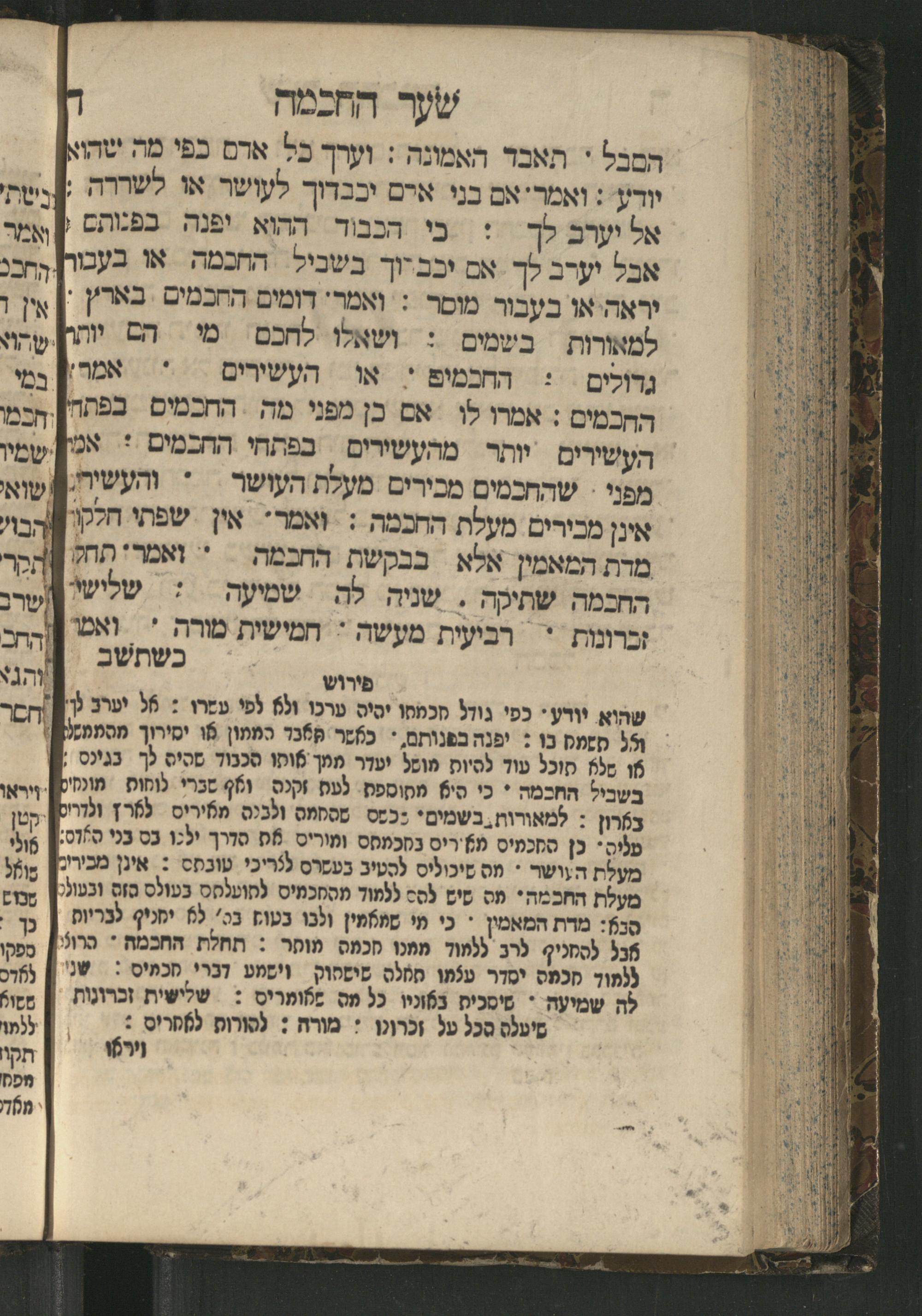 Sefer Mivḥar ha-peninim : bi-melitsat ha-ḥakhme ha-ḳadmonim u-mishle filosofi. ha-rishonim u-musaram u-mitsṿotam ... mesudar le-sheʿarim ʿim perush maspiḳ / ḥibro ha-rav R. Yedaʿy. z.l. bi-leshon ʿArvi ṿe-heʿetiḳo ha-maʿatiḳ ... ha-rav R. Yehuda ibn Tibon z.l. le-ʿIvri ; ha-sefer ... ha-zeh nidpas kamah peʿami. ṿe-ʿatah huva ʿal makhbesh ha-defus ...ספר מבחר הפנינים : במליצת החכמי׳ הקדמונים ומשלי פילסופי׳ הראשונים ומוסרם ומצותם ... מסודר לשערים עם פירוש מספיק / חברו הרב ר׳ ידעי׳ ז״ל בלשון ערבי והעתיקו המעתיק ... הרב ר יהודה אבן תבון ז״ל לעברי ; הספר ... הזה נדפס כמה פעמי׳ ועתה הובא על מכבש הדפוס ...