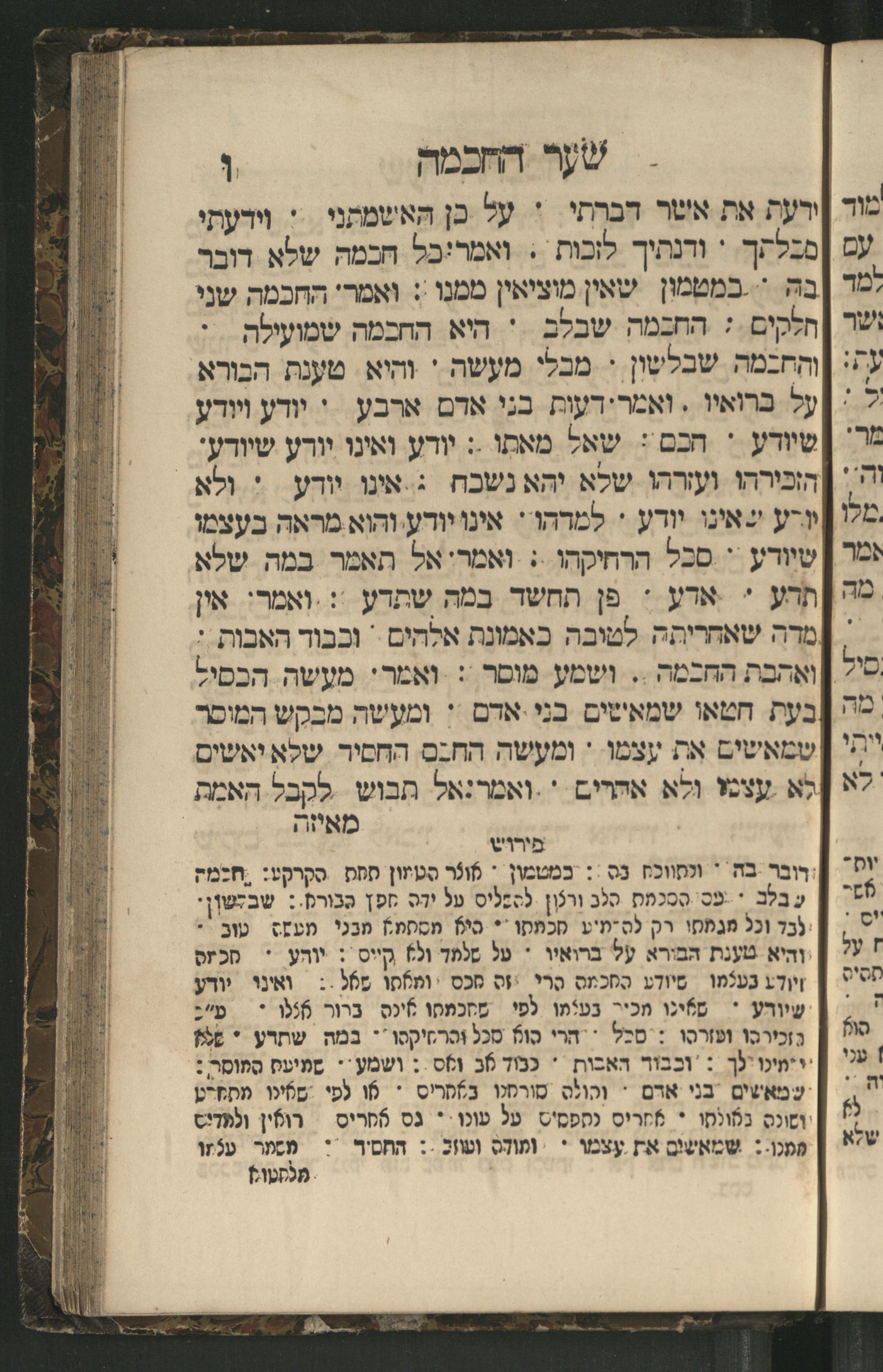 Sefer Mivḥar ha-peninim : bi-melitsat ha-ḥakhme ha-ḳadmonim u-mishle filosofi. ha-rishonim u-musaram u-mitsṿotam ... mesudar le-sheʿarim ʿim perush maspiḳ / ḥibro ha-rav R. Yedaʿy. z.l. bi-leshon ʿArvi ṿe-heʿetiḳo ha-maʿatiḳ ... ha-rav R. Yehuda ibn Tibon z.l. le-ʿIvri ; ha-sefer ... ha-zeh nidpas kamah peʿami. ṿe-ʿatah huva ʿal makhbesh ha-defus ...ספר מבחר הפנינים : במליצת החכמי׳ הקדמונים ומשלי פילסופי׳ הראשונים ומוסרם ומצותם ... מסודר לשערים עם פירוש מספיק / חברו הרב ר׳ ידעי׳ ז״ל בלשון ערבי והעתיקו המעתיק ... הרב ר יהודה אבן תבון ז״ל לעברי ; הספר ... הזה נדפס כמה פעמי׳ ועתה הובא על מכבש הדפוס ...