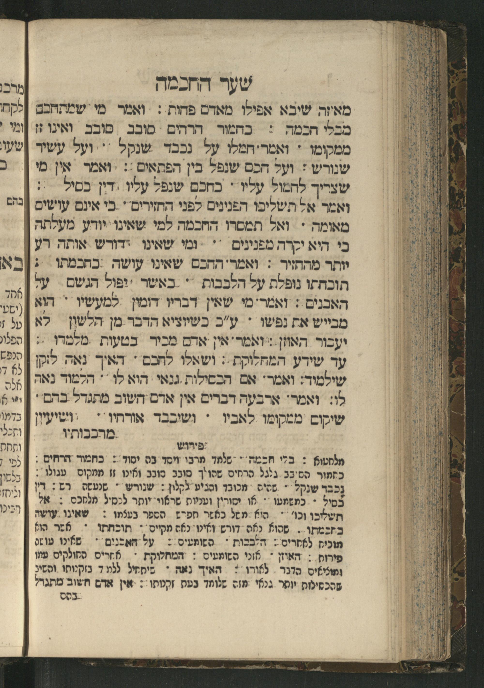 Sefer Mivḥar ha-peninim : bi-melitsat ha-ḥakhme ha-ḳadmonim u-mishle filosofi. ha-rishonim u-musaram u-mitsṿotam ... mesudar le-sheʿarim ʿim perush maspiḳ / ḥibro ha-rav R. Yedaʿy. z.l. bi-leshon ʿArvi ṿe-heʿetiḳo ha-maʿatiḳ ... ha-rav R. Yehuda ibn Tibon z.l. le-ʿIvri ; ha-sefer ... ha-zeh nidpas kamah peʿami. ṿe-ʿatah huva ʿal makhbesh ha-defus ...ספר מבחר הפנינים : במליצת החכמי׳ הקדמונים ומשלי פילסופי׳ הראשונים ומוסרם ומצותם ... מסודר לשערים עם פירוש מספיק / חברו הרב ר׳ ידעי׳ ז״ל בלשון ערבי והעתיקו המעתיק ... הרב ר יהודה אבן תבון ז״ל לעברי ; הספר ... הזה נדפס כמה פעמי׳ ועתה הובא על מכבש הדפוס ...
