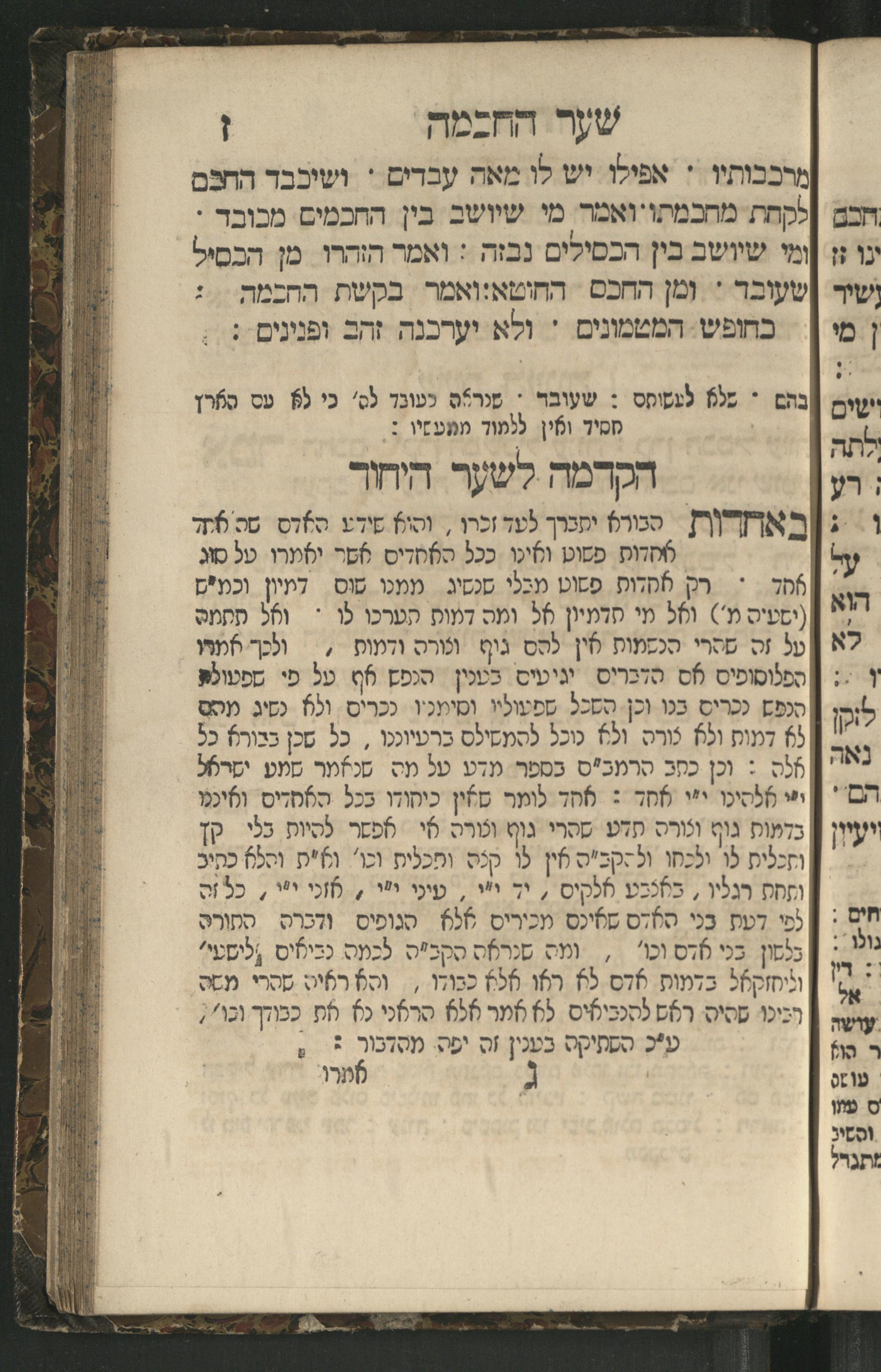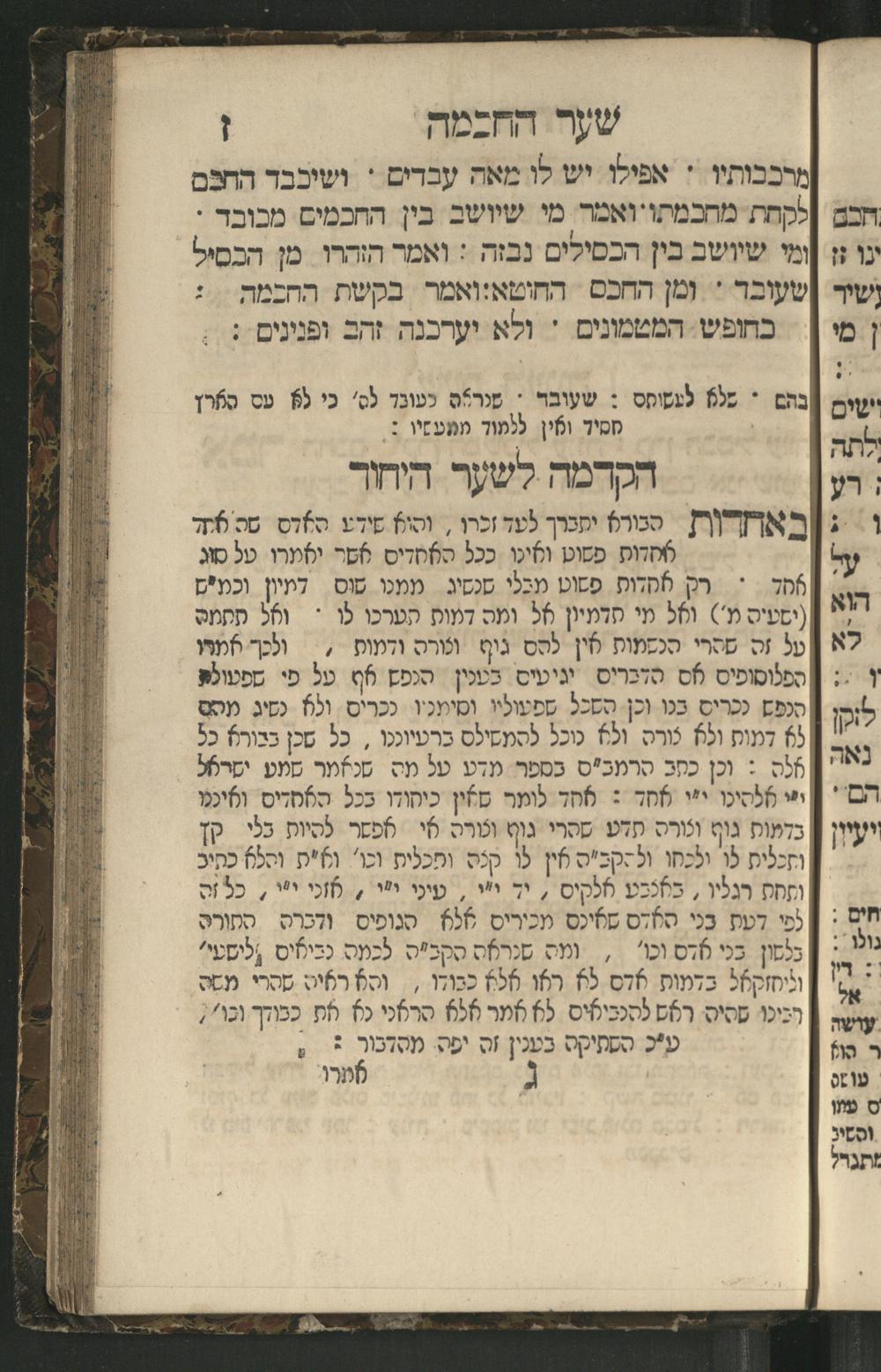 Sefer Mivḥar ha-peninim : bi-melitsat ha-ḥakhme ha-ḳadmonim u-mishle filosofi. ha-rishonim u-musaram u-mitsṿotam ... mesudar le-sheʿarim ʿim perush maspiḳ / ḥibro ha-rav R. Yedaʿy. z.l. bi-leshon ʿArvi ṿe-heʿetiḳo ha-maʿatiḳ ... ha-rav R. Yehuda ibn Tibon z.l. le-ʿIvri ; ha-sefer ... ha-zeh nidpas kamah peʿami. ṿe-ʿatah huva ʿal makhbesh ha-defus ...ספר מבחר הפנינים : במליצת החכמי׳ הקדמונים ומשלי פילסופי׳ הראשונים ומוסרם ומצותם ... מסודר לשערים עם פירוש מספיק / חברו הרב ר׳ ידעי׳ ז״ל בלשון ערבי והעתיקו המעתיק ... הרב ר יהודה אבן תבון ז״ל לעברי ; הספר ... הזה נדפס כמה פעמי׳ ועתה הובא על מכבש הדפוס ...