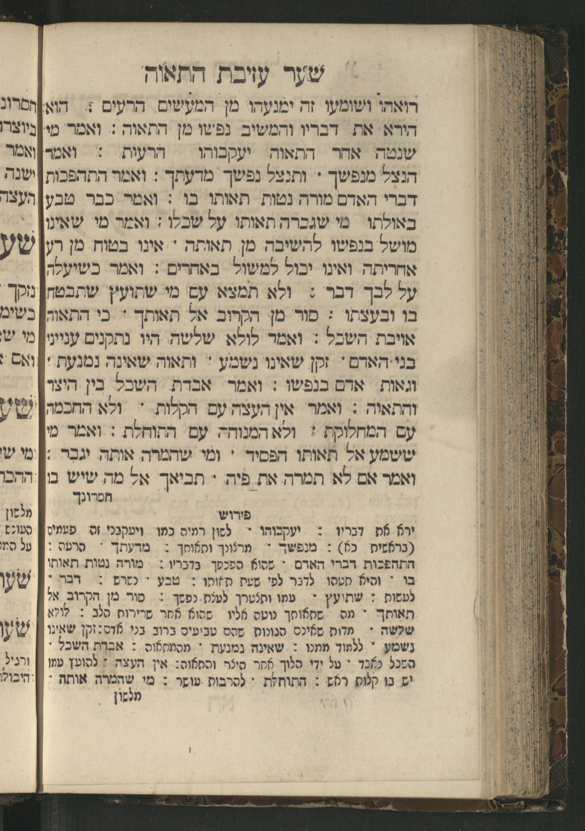 Sefer Mivḥar ha-peninim : bi-melitsat ha-ḥakhme ha-ḳadmonim u-mishle filosofi. ha-rishonim u-musaram u-mitsṿotam ... mesudar le-sheʿarim ʿim perush maspiḳ / ḥibro ha-rav R. Yedaʿy. z.l. bi-leshon ʿArvi ṿe-heʿetiḳo ha-maʿatiḳ ... ha-rav R. Yehuda ibn Tibon z.l. le-ʿIvri ; ha-sefer ... ha-zeh nidpas kamah peʿami. ṿe-ʿatah huva ʿal makhbesh ha-defus ...ספר מבחר הפנינים : במליצת החכמי׳ הקדמונים ומשלי פילסופי׳ הראשונים ומוסרם ומצותם ... מסודר לשערים עם פירוש מספיק / חברו הרב ר׳ ידעי׳ ז״ל בלשון ערבי והעתיקו המעתיק ... הרב ר יהודה אבן תבון ז״ל לעברי ; הספר ... הזה נדפס כמה פעמי׳ ועתה הובא על מכבש הדפוס ...