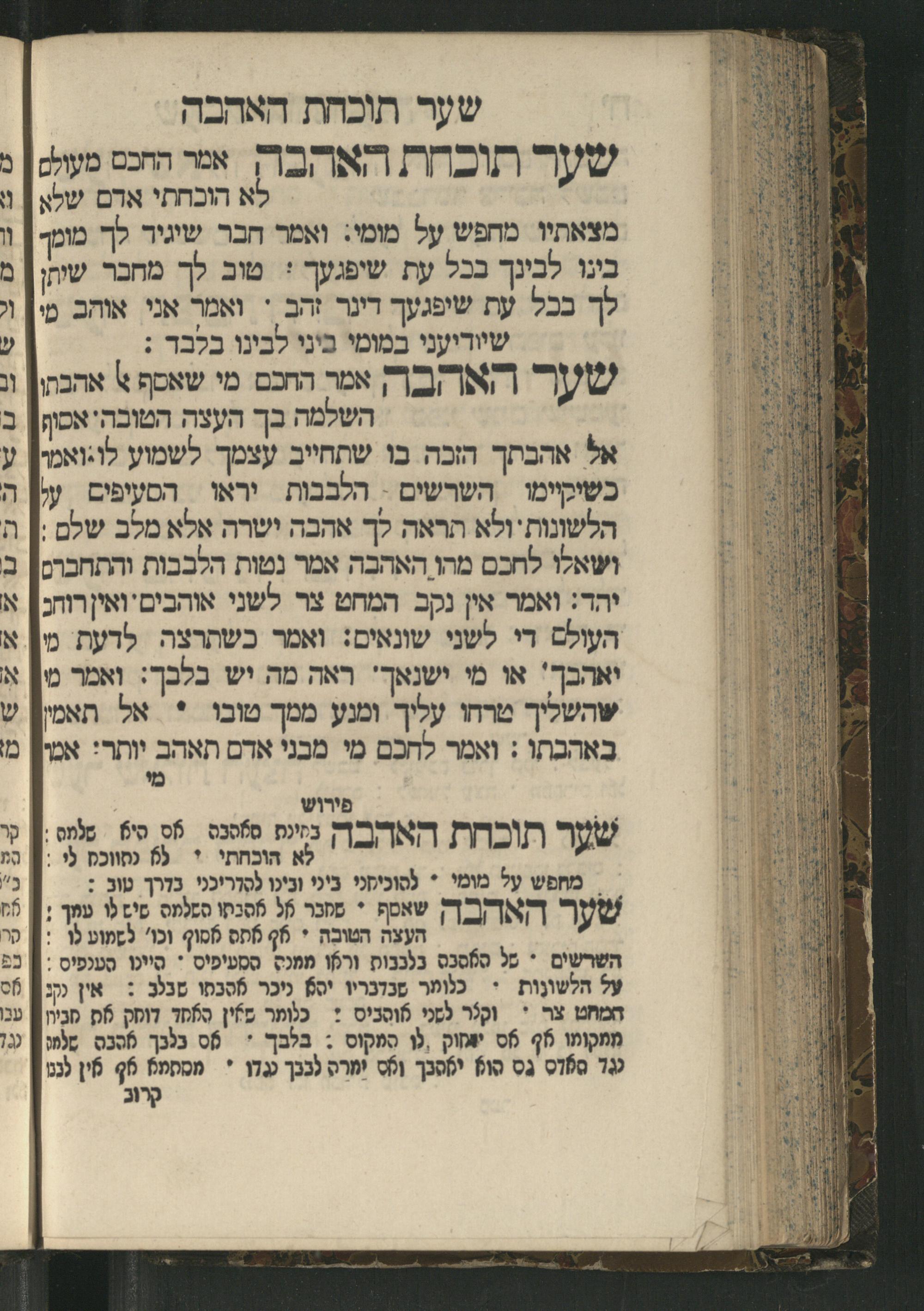 Sefer Mivḥar ha-peninim : bi-melitsat ha-ḥakhme ha-ḳadmonim u-mishle filosofi. ha-rishonim u-musaram u-mitsṿotam ... mesudar le-sheʿarim ʿim perush maspiḳ / ḥibro ha-rav R. Yedaʿy. z.l. bi-leshon ʿArvi ṿe-heʿetiḳo ha-maʿatiḳ ... ha-rav R. Yehuda ibn Tibon z.l. le-ʿIvri ; ha-sefer ... ha-zeh nidpas kamah peʿami. ṿe-ʿatah huva ʿal makhbesh ha-defus ...ספר מבחר הפנינים : במליצת החכמי׳ הקדמונים ומשלי פילסופי׳ הראשונים ומוסרם ומצותם ... מסודר לשערים עם פירוש מספיק / חברו הרב ר׳ ידעי׳ ז״ל בלשון ערבי והעתיקו המעתיק ... הרב ר יהודה אבן תבון ז״ל לעברי ; הספר ... הזה נדפס כמה פעמי׳ ועתה הובא על מכבש הדפוס ...
