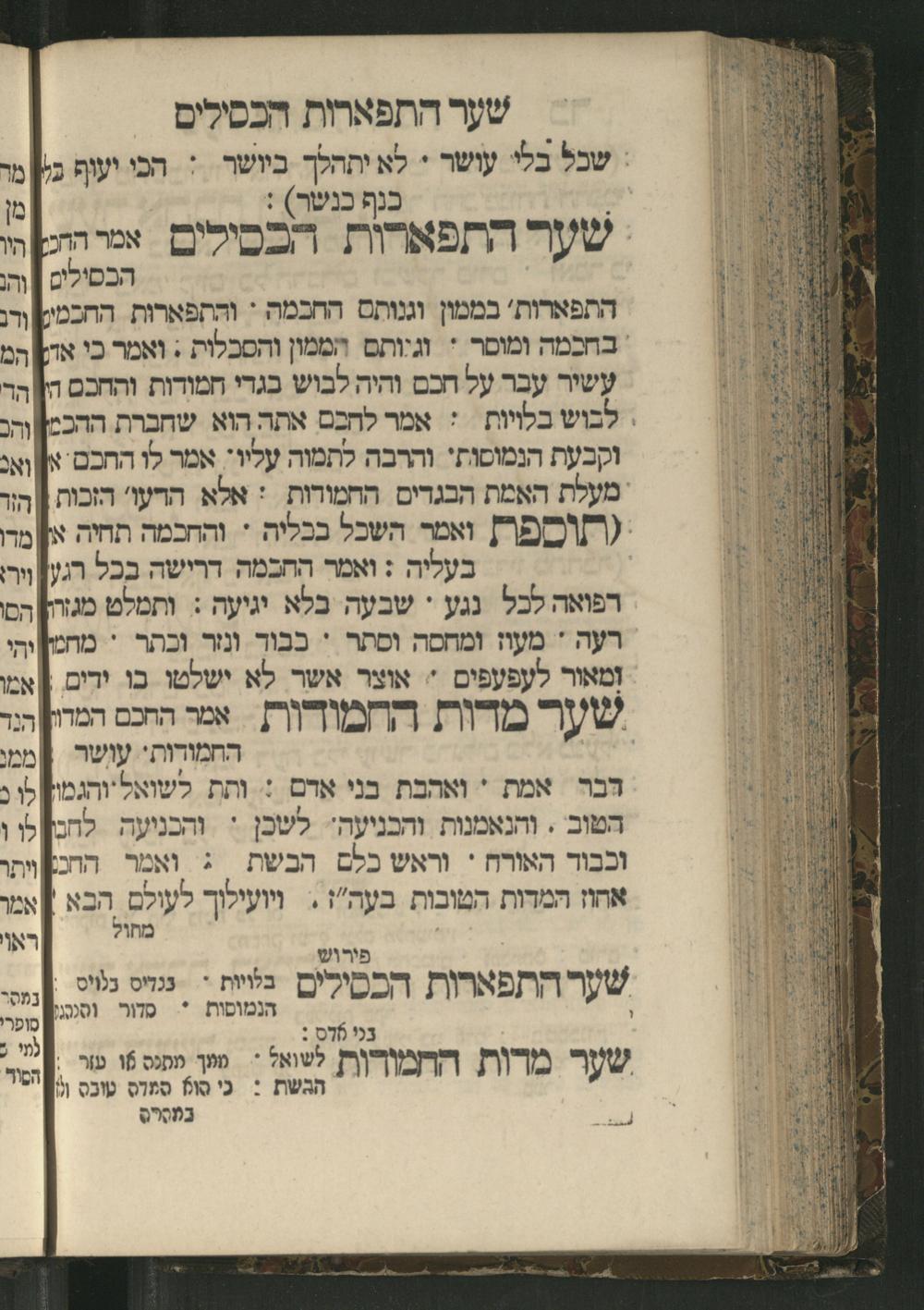 Sefer Mivḥar ha-peninim : bi-melitsat ha-ḥakhme ha-ḳadmonim u-mishle filosofi. ha-rishonim u-musaram u-mitsṿotam ... mesudar le-sheʿarim ʿim perush maspiḳ / ḥibro ha-rav R. Yedaʿy. z.l. bi-leshon ʿArvi ṿe-heʿetiḳo ha-maʿatiḳ ... ha-rav R. Yehuda ibn Tibon z.l. le-ʿIvri ; ha-sefer ... ha-zeh nidpas kamah peʿami. ṿe-ʿatah huva ʿal makhbesh ha-defus ...ספר מבחר הפנינים : במליצת החכמי׳ הקדמונים ומשלי פילסופי׳ הראשונים ומוסרם ומצותם ... מסודר לשערים עם פירוש מספיק / חברו הרב ר׳ ידעי׳ ז״ל בלשון ערבי והעתיקו המעתיק ... הרב ר יהודה אבן תבון ז״ל לעברי ; הספר ... הזה נדפס כמה פעמי׳ ועתה הובא על מכבש הדפוס ...