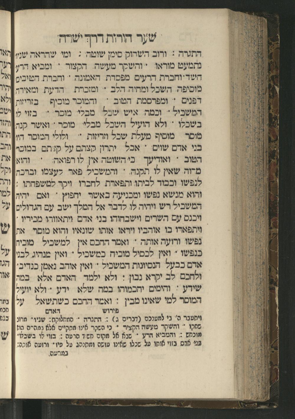 Sefer Mivḥar ha-peninim : bi-melitsat ha-ḥakhme ha-ḳadmonim u-mishle filosofi. ha-rishonim u-musaram u-mitsṿotam ... mesudar le-sheʿarim ʿim perush maspiḳ / ḥibro ha-rav R. Yedaʿy. z.l. bi-leshon ʿArvi ṿe-heʿetiḳo ha-maʿatiḳ ... ha-rav R. Yehuda ibn Tibon z.l. le-ʿIvri ; ha-sefer ... ha-zeh nidpas kamah peʿami. ṿe-ʿatah huva ʿal makhbesh ha-defus ...ספר מבחר הפנינים : במליצת החכמי׳ הקדמונים ומשלי פילסופי׳ הראשונים ומוסרם ומצותם ... מסודר לשערים עם פירוש מספיק / חברו הרב ר׳ ידעי׳ ז״ל בלשון ערבי והעתיקו המעתיק ... הרב ר יהודה אבן תבון ז״ל לעברי ; הספר ... הזה נדפס כמה פעמי׳ ועתה הובא על מכבש הדפוס ...