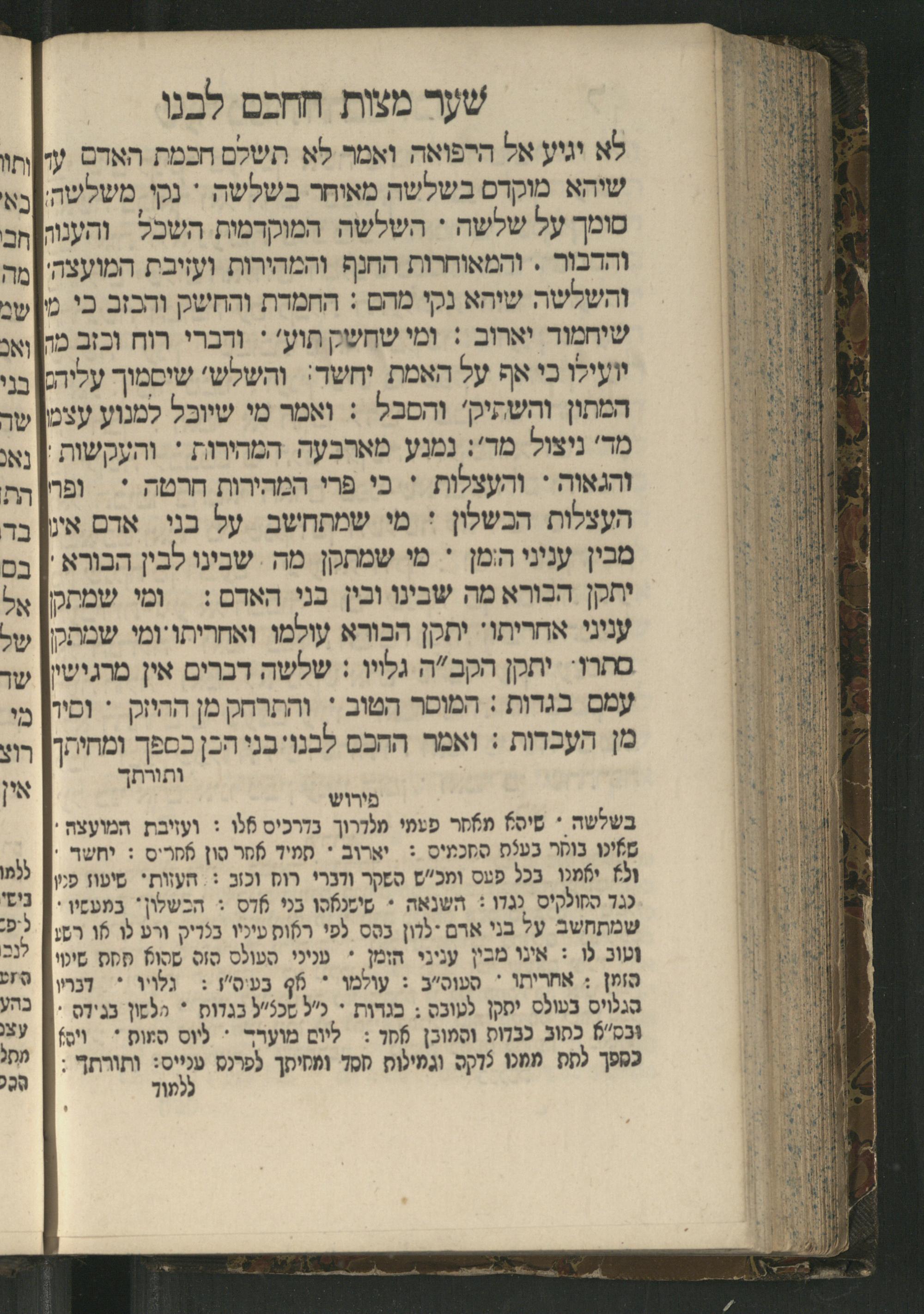 Sefer Mivḥar ha-peninim : bi-melitsat ha-ḥakhme ha-ḳadmonim u-mishle filosofi. ha-rishonim u-musaram u-mitsṿotam ... mesudar le-sheʿarim ʿim perush maspiḳ / ḥibro ha-rav R. Yedaʿy. z.l. bi-leshon ʿArvi ṿe-heʿetiḳo ha-maʿatiḳ ... ha-rav R. Yehuda ibn Tibon z.l. le-ʿIvri ; ha-sefer ... ha-zeh nidpas kamah peʿami. ṿe-ʿatah huva ʿal makhbesh ha-defus ...ספר מבחר הפנינים : במליצת החכמי׳ הקדמונים ומשלי פילסופי׳ הראשונים ומוסרם ומצותם ... מסודר לשערים עם פירוש מספיק / חברו הרב ר׳ ידעי׳ ז״ל בלשון ערבי והעתיקו המעתיק ... הרב ר יהודה אבן תבון ז״ל לעברי ; הספר ... הזה נדפס כמה פעמי׳ ועתה הובא על מכבש הדפוס ...