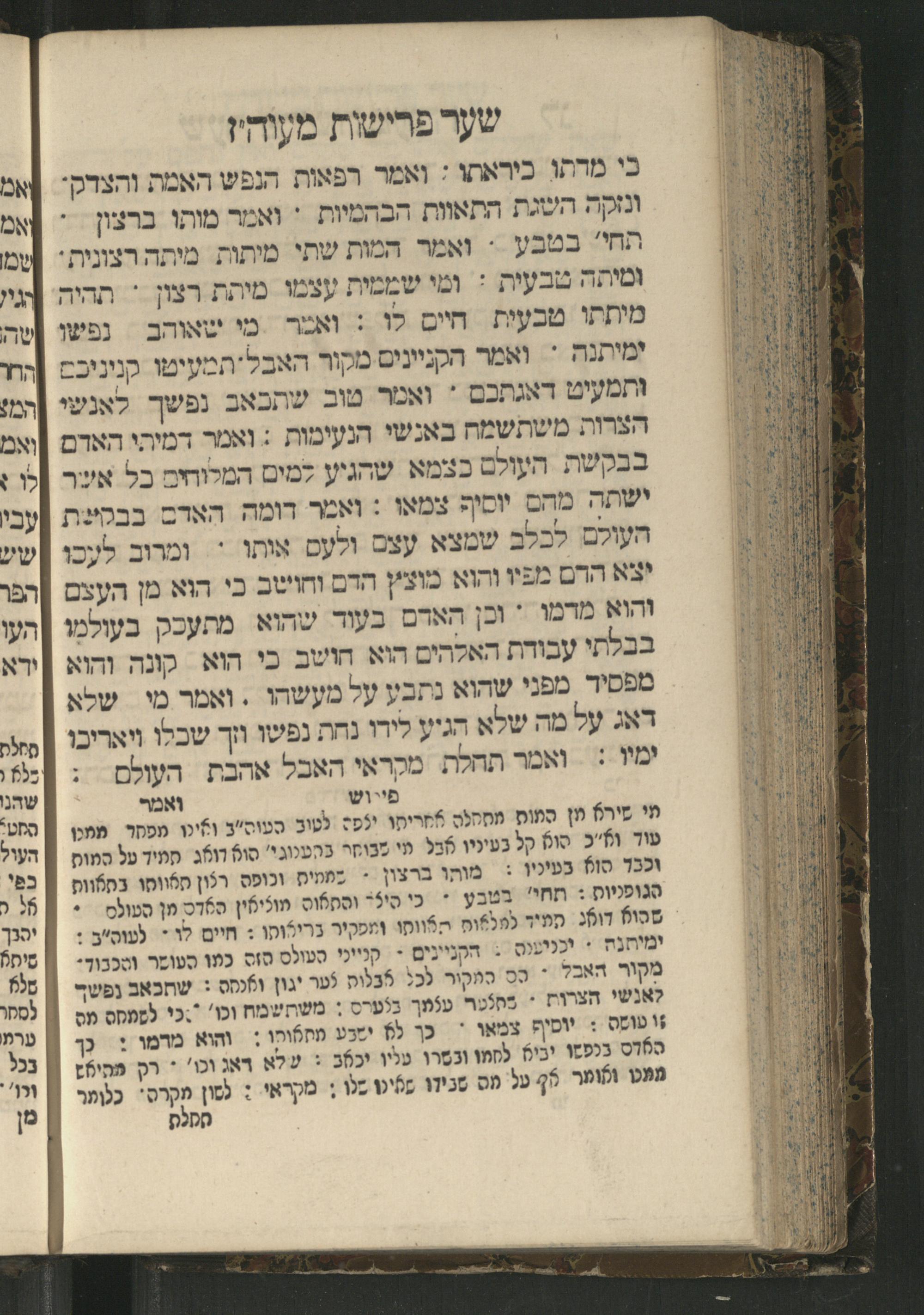 Sefer Mivḥar ha-peninim : bi-melitsat ha-ḥakhme ha-ḳadmonim u-mishle filosofi. ha-rishonim u-musaram u-mitsṿotam ... mesudar le-sheʿarim ʿim perush maspiḳ / ḥibro ha-rav R. Yedaʿy. z.l. bi-leshon ʿArvi ṿe-heʿetiḳo ha-maʿatiḳ ... ha-rav R. Yehuda ibn Tibon z.l. le-ʿIvri ; ha-sefer ... ha-zeh nidpas kamah peʿami. ṿe-ʿatah huva ʿal makhbesh ha-defus ...ספר מבחר הפנינים : במליצת החכמי׳ הקדמונים ומשלי פילסופי׳ הראשונים ומוסרם ומצותם ... מסודר לשערים עם פירוש מספיק / חברו הרב ר׳ ידעי׳ ז״ל בלשון ערבי והעתיקו המעתיק ... הרב ר יהודה אבן תבון ז״ל לעברי ; הספר ... הזה נדפס כמה פעמי׳ ועתה הובא על מכבש הדפוס ...