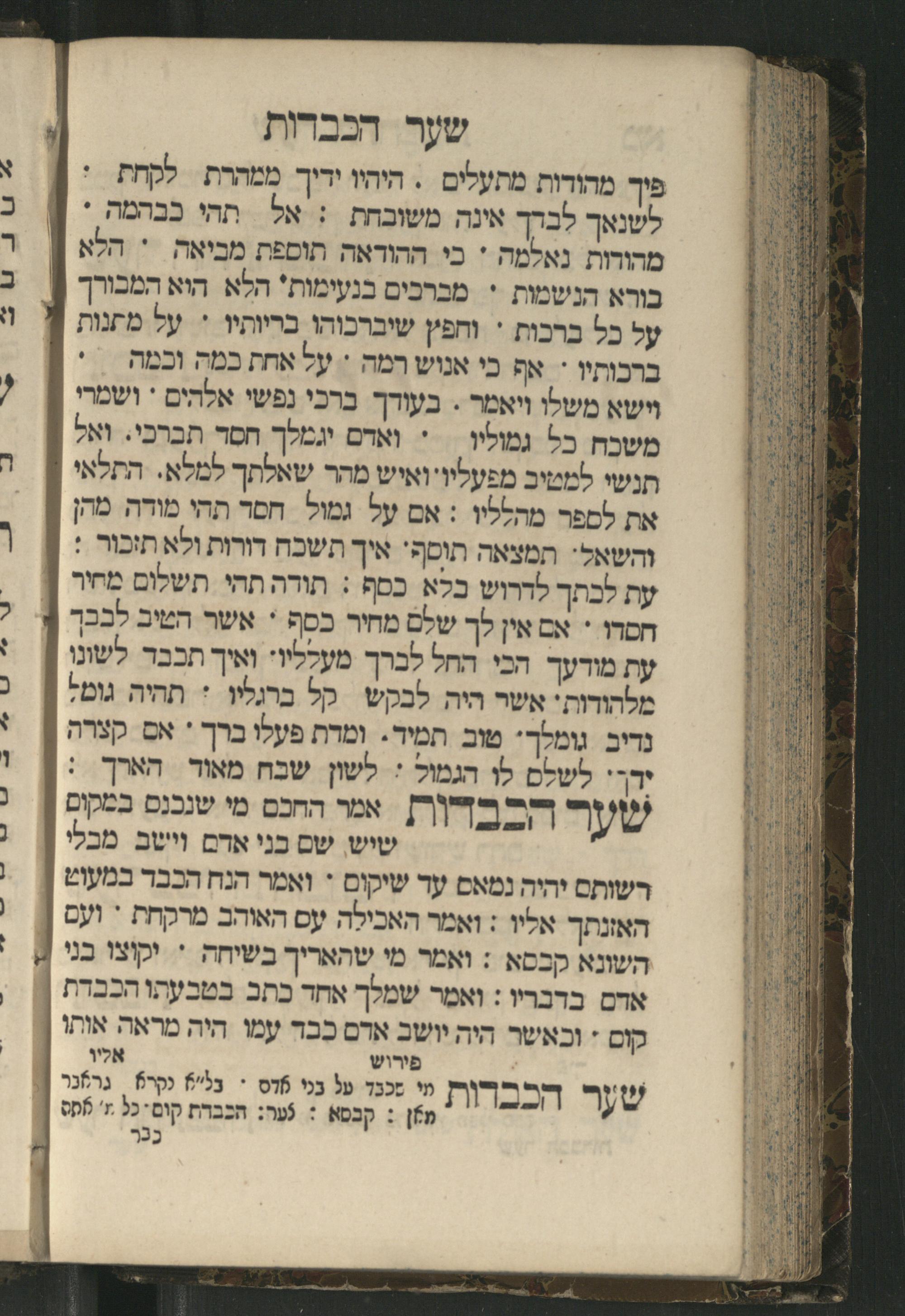 Sefer Mivḥar ha-peninim : bi-melitsat ha-ḥakhme ha-ḳadmonim u-mishle filosofi. ha-rishonim u-musaram u-mitsṿotam ... mesudar le-sheʿarim ʿim perush maspiḳ / ḥibro ha-rav R. Yedaʿy. z.l. bi-leshon ʿArvi ṿe-heʿetiḳo ha-maʿatiḳ ... ha-rav R. Yehuda ibn Tibon z.l. le-ʿIvri ; ha-sefer ... ha-zeh nidpas kamah peʿami. ṿe-ʿatah huva ʿal makhbesh ha-defus ...ספר מבחר הפנינים : במליצת החכמי׳ הקדמונים ומשלי פילסופי׳ הראשונים ומוסרם ומצותם ... מסודר לשערים עם פירוש מספיק / חברו הרב ר׳ ידעי׳ ז״ל בלשון ערבי והעתיקו המעתיק ... הרב ר יהודה אבן תבון ז״ל לעברי ; הספר ... הזה נדפס כמה פעמי׳ ועתה הובא על מכבש הדפוס ...