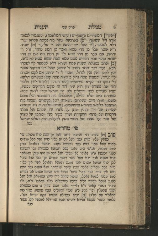 Megilat Taʿanit : hi ha-nodaʿat u-mefursemet mi-yeme ḥakhme ha-Mishnah ṿe-ha-Talmud, ṿe-nikhtevah ʿa.y. Ḥananya ben Ḥizḳiyah ben Guryon ṿe-siʿato ... ʿim pe. meluḳaṭ mi-Bavli ṿi-Yerushalmi u-pe. Rashi ṿe-Tos. / asher asaf ṿe-liḳeṭ ha-Rav ... Avraham Segal z.l. mi-Ḳraḳa niḳra be-shem Perush Mahara, u-ṿe-sofo baʾu ḥidushaṿ ʿal Rashi ṿe-Tos. ; ḥubar lah yaḥad Megilat Anṭiyokhus le-Ḥanukahמגילת תענית : היא הנודעת ומפורסמת מימי חכמי המשנה והתלמוד, ונכתבה ע״י חנניא בן חזקיה בן גריון וסיעתו ... עם פי׳ מלוקט מבבלי וירושלמי ופירש״י ותוס׳ / אשר אסף וליקט הרב ... אברהם סג״ל ז״ל מקראקא נקרא בשם פירוש מהר״א, ובסופו באו חדושיו על רש״י ותוס׳ ; חובר לה יחד מגילת אנטיוכוס לחנוכה