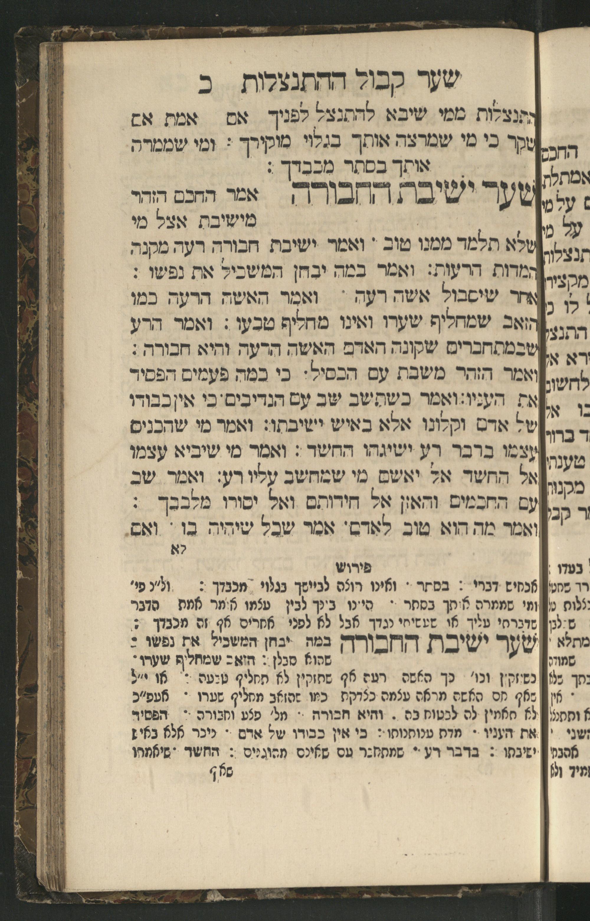 Sefer Mivḥar ha-peninim : bi-melitsat ha-ḥakhme ha-ḳadmonim u-mishle filosofi. ha-rishonim u-musaram u-mitsṿotam ... mesudar le-sheʿarim ʿim perush maspiḳ / ḥibro ha-rav R. Yedaʿy. z.l. bi-leshon ʿArvi ṿe-heʿetiḳo ha-maʿatiḳ ... ha-rav R. Yehuda ibn Tibon z.l. le-ʿIvri ; ha-sefer ... ha-zeh nidpas kamah peʿami. ṿe-ʿatah huva ʿal makhbesh ha-defus ...ספר מבחר הפנינים : במליצת החכמי׳ הקדמונים ומשלי פילסופי׳ הראשונים ומוסרם ומצותם ... מסודר לשערים עם פירוש מספיק / חברו הרב ר׳ ידעי׳ ז״ל בלשון ערבי והעתיקו המעתיק ... הרב ר יהודה אבן תבון ז״ל לעברי ; הספר ... הזה נדפס כמה פעמי׳ ועתה הובא על מכבש הדפוס ...