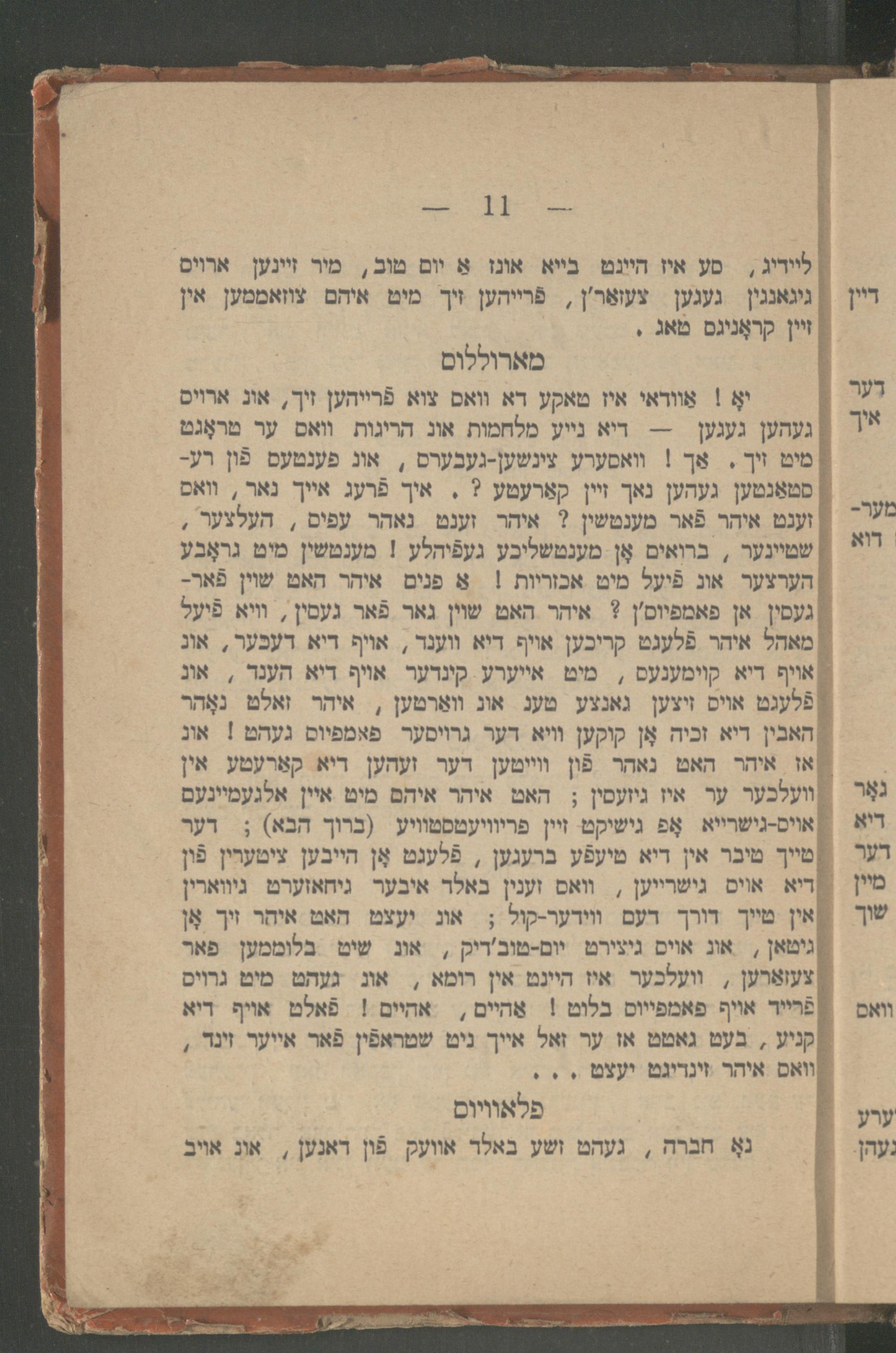 Yulyus Tsezar : eyne isṭorishe ṭrahedishe drama : iber Romaʹr respobliḳe in 5 ershaynungen / ferfasṭ fon dem berihmṭen dikhṭer un dramaṭurg Ṿillyam Sheḳsper ; fray iberzeṭsṭ un bearbeyṭeṭ ins prost yudishen zshargon fon Betsalʾel Ṿishnipolsḳiיוליוס צעזאר : איינע איסטארישע, טראהעדישע דראמא : איבער רומאʹר רעספאבליקע אין 5 ערשיינונגען / פערפאסט פאן דעם בעריהמטען דיכטער אונ דראמאטורג ווילליאם שעקספער ; פרייא איבערזעטצט אונ בעארבייטעט אינס פראסט יודישען זשארגאן פאן בצלאל ווישניפאלסקי