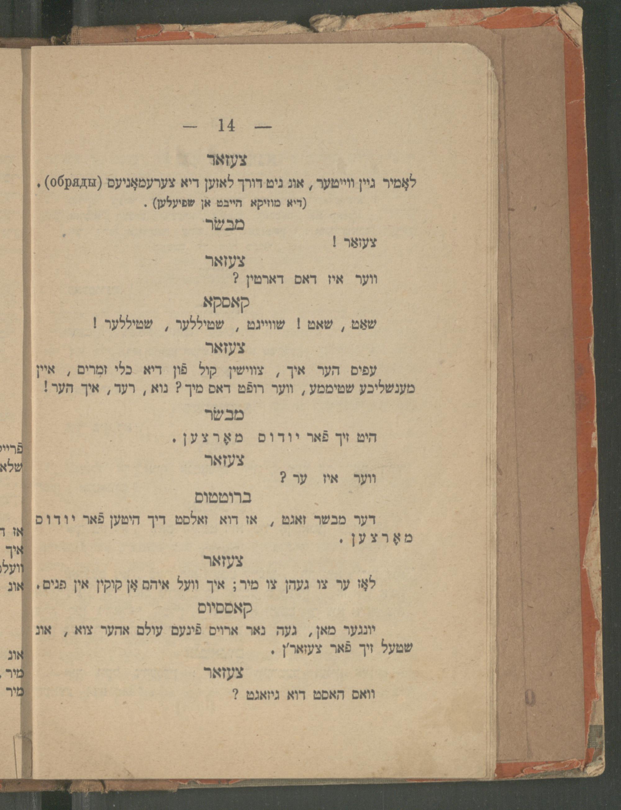 Yulyus Tsezar : eyne isṭorishe ṭrahedishe drama : iber Romaʹr respobliḳe in 5 ershaynungen / ferfasṭ fon dem berihmṭen dikhṭer un dramaṭurg Ṿillyam Sheḳsper ; fray iberzeṭsṭ un bearbeyṭeṭ ins prost yudishen zshargon fon Betsalʾel Ṿishnipolsḳiיוליוס צעזאר : איינע איסטארישע, טראהעדישע דראמא : איבער רומאʹר רעספאבליקע אין 5 ערשיינונגען / פערפאסט פאן דעם בעריהמטען דיכטער אונ דראמאטורג ווילליאם שעקספער ; פרייא איבערזעטצט אונ בעארבייטעט אינס פראסט יודישען זשארגאן פאן בצלאל ווישניפאלסקי