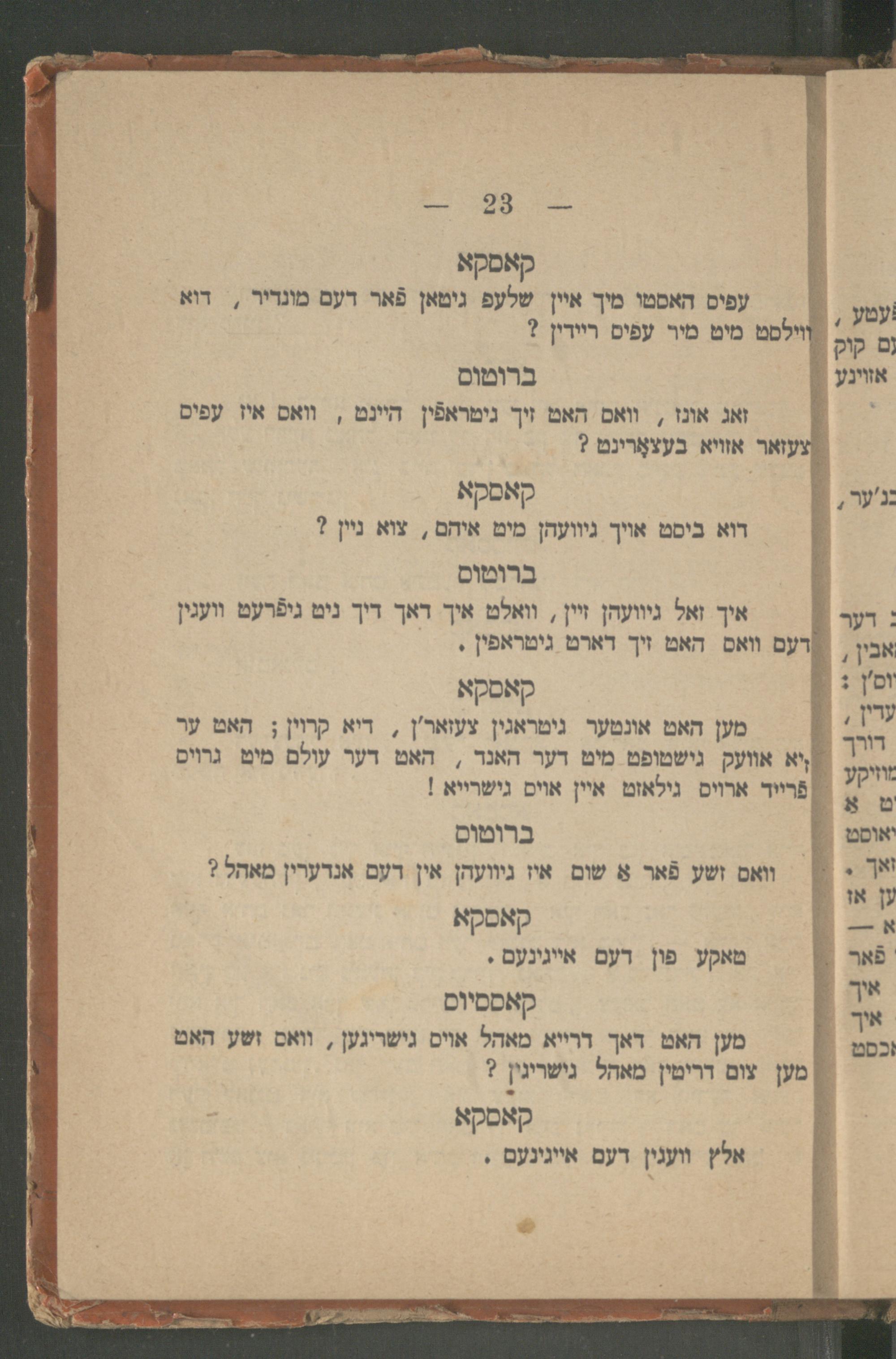 Yulyus Tsezar : eyne isṭorishe ṭrahedishe drama : iber Romaʹr respobliḳe in 5 ershaynungen / ferfasṭ fon dem berihmṭen dikhṭer un dramaṭurg Ṿillyam Sheḳsper ; fray iberzeṭsṭ un bearbeyṭeṭ ins prost yudishen zshargon fon Betsalʾel Ṿishnipolsḳiיוליוס צעזאר : איינע איסטארישע, טראהעדישע דראמא : איבער רומאʹר רעספאבליקע אין 5 ערשיינונגען / פערפאסט פאן דעם בעריהמטען דיכטער אונ דראמאטורג ווילליאם שעקספער ; פרייא איבערזעטצט אונ בעארבייטעט אינס פראסט יודישען זשארגאן פאן בצלאל ווישניפאלסקי
