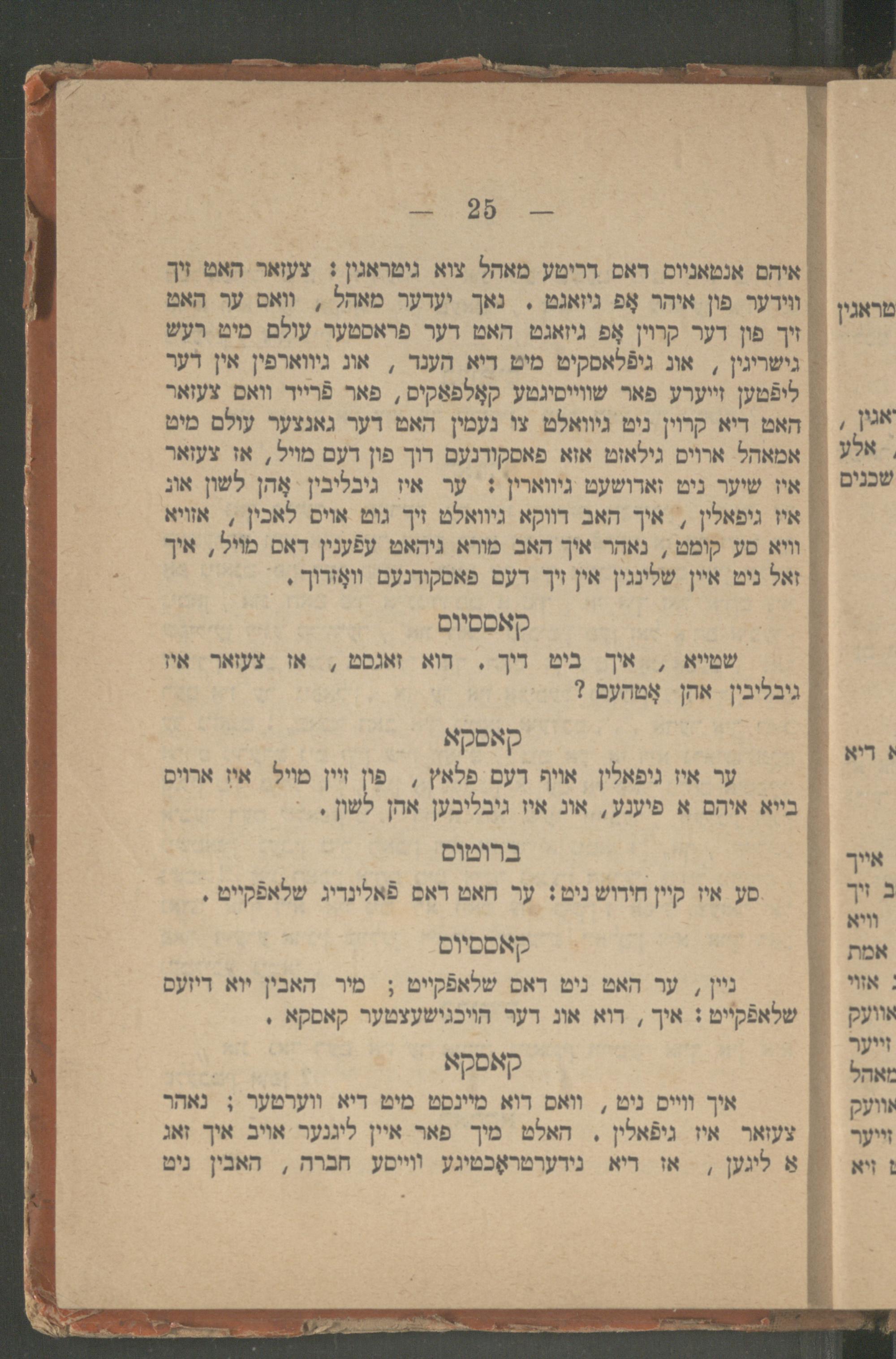 Yulyus Tsezar : eyne isṭorishe ṭrahedishe drama : iber Romaʹr respobliḳe in 5 ershaynungen / ferfasṭ fon dem berihmṭen dikhṭer un dramaṭurg Ṿillyam Sheḳsper ; fray iberzeṭsṭ un bearbeyṭeṭ ins prost yudishen zshargon fon Betsalʾel Ṿishnipolsḳiיוליוס צעזאר : איינע איסטארישע, טראהעדישע דראמא : איבער רומאʹר רעספאבליקע אין 5 ערשיינונגען / פערפאסט פאן דעם בעריהמטען דיכטער אונ דראמאטורג ווילליאם שעקספער ; פרייא איבערזעטצט אונ בעארבייטעט אינס פראסט יודישען זשארגאן פאן בצלאל ווישניפאלסקי