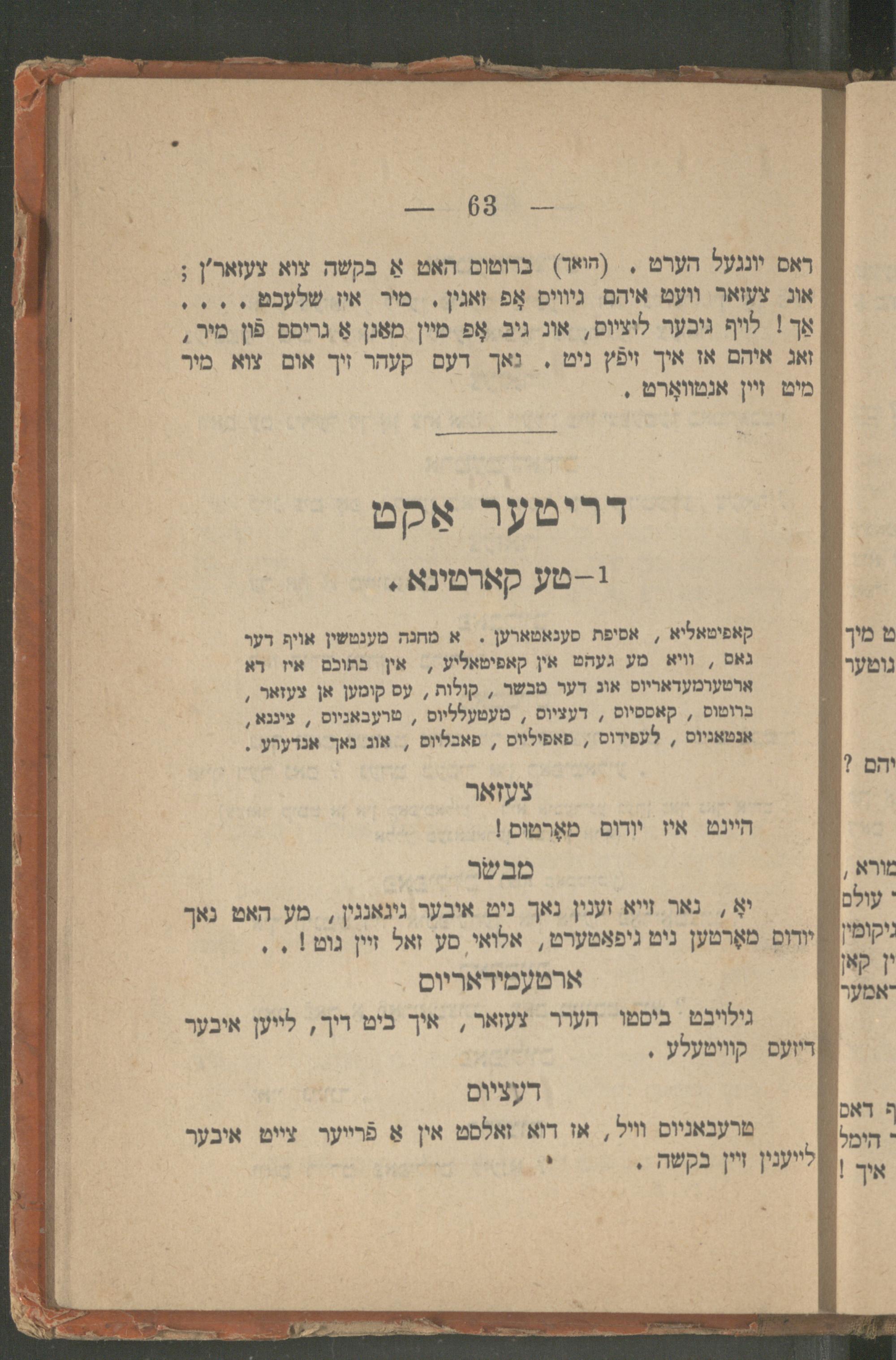 Yulyus Tsezar : eyne isṭorishe ṭrahedishe drama : iber Romaʹr respobliḳe in 5 ershaynungen / ferfasṭ fon dem berihmṭen dikhṭer un dramaṭurg Ṿillyam Sheḳsper ; fray iberzeṭsṭ un bearbeyṭeṭ ins prost yudishen zshargon fon Betsalʾel Ṿishnipolsḳiיוליוס צעזאר : איינע איסטארישע, טראהעדישע דראמא : איבער רומאʹר רעספאבליקע אין 5 ערשיינונגען / פערפאסט פאן דעם בעריהמטען דיכטער אונ דראמאטורג ווילליאם שעקספער ; פרייא איבערזעטצט אונ בעארבייטעט אינס פראסט יודישען זשארגאן פאן בצלאל ווישניפאלסקי