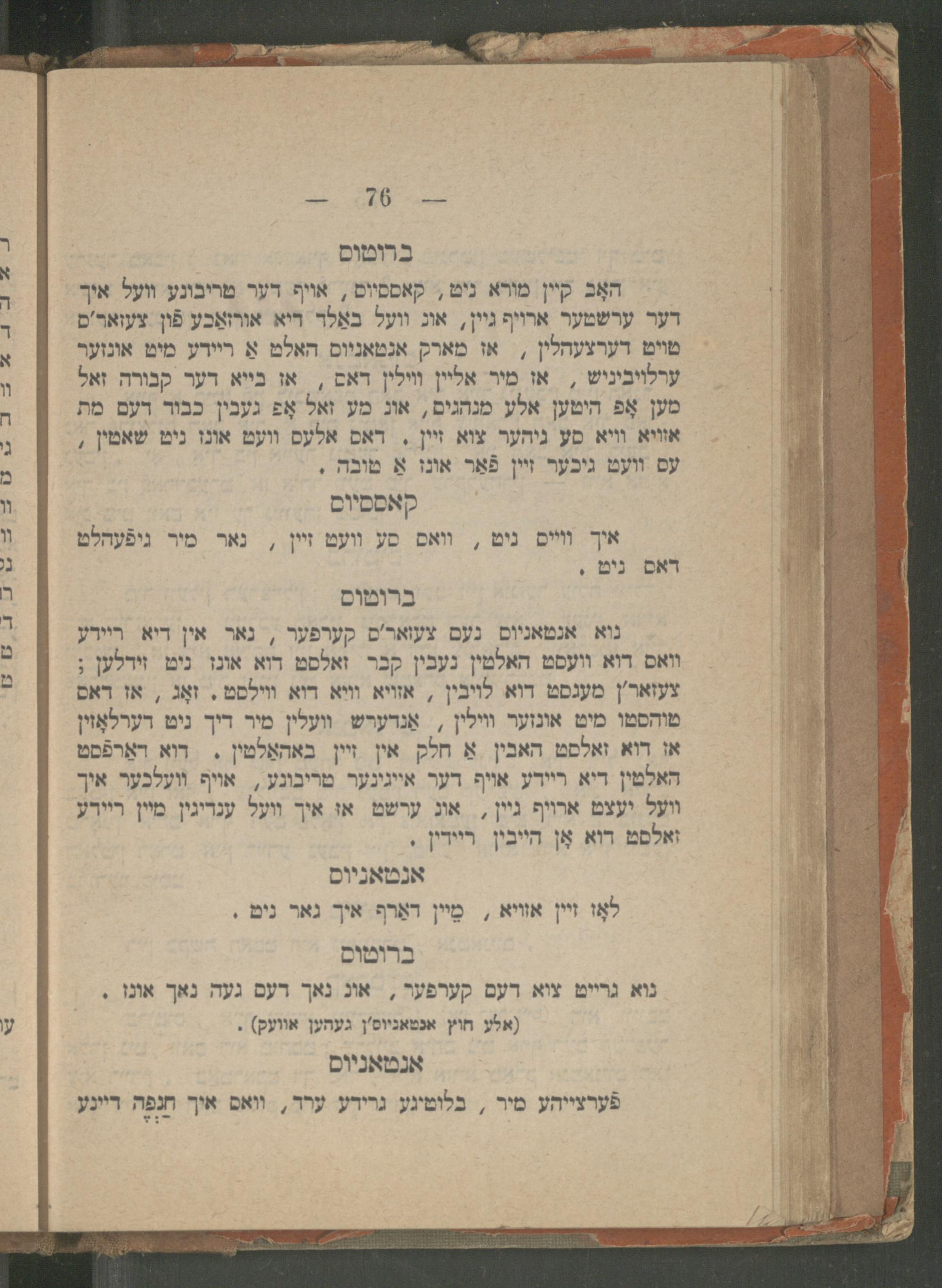 Yulyus Tsezar : eyne isṭorishe ṭrahedishe drama : iber Romaʹr respobliḳe in 5 ershaynungen / ferfasṭ fon dem berihmṭen dikhṭer un dramaṭurg Ṿillyam Sheḳsper ; fray iberzeṭsṭ un bearbeyṭeṭ ins prost yudishen zshargon fon Betsalʾel Ṿishnipolsḳiיוליוס צעזאר : איינע איסטארישע, טראהעדישע דראמא : איבער רומאʹר רעספאבליקע אין 5 ערשיינונגען / פערפאסט פאן דעם בעריהמטען דיכטער אונ דראמאטורג ווילליאם שעקספער ; פרייא איבערזעטצט אונ בעארבייטעט אינס פראסט יודישען זשארגאן פאן בצלאל ווישניפאלסקי