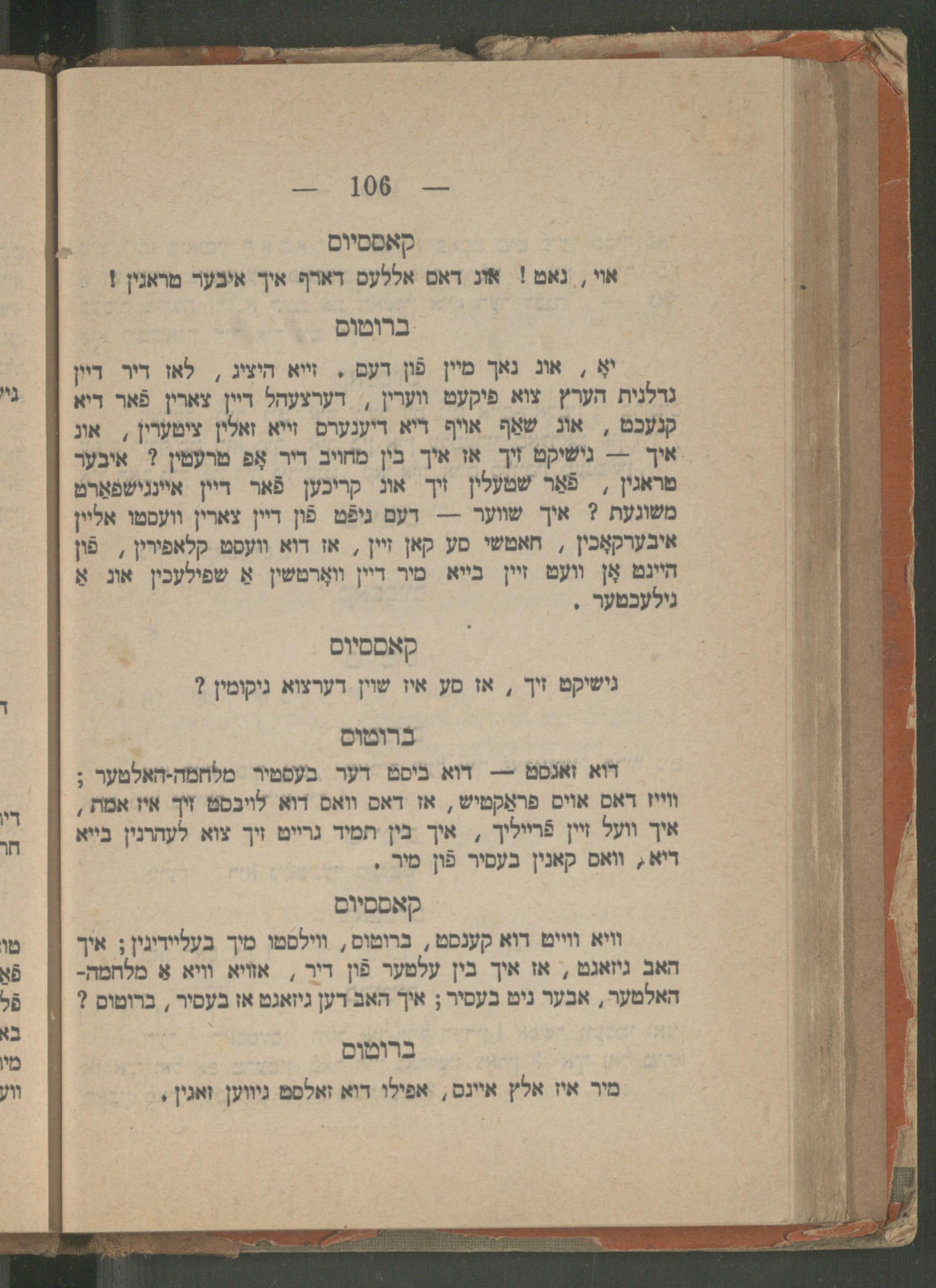 Yulyus Tsezar : eyne isṭorishe ṭrahedishe drama : iber Romaʹr respobliḳe in 5 ershaynungen / ferfasṭ fon dem berihmṭen dikhṭer un dramaṭurg Ṿillyam Sheḳsper ; fray iberzeṭsṭ un bearbeyṭeṭ ins prost yudishen zshargon fon Betsalʾel Ṿishnipolsḳiיוליוס צעזאר : איינע איסטארישע, טראהעדישע דראמא : איבער רומאʹר רעספאבליקע אין 5 ערשיינונגען / פערפאסט פאן דעם בעריהמטען דיכטער אונ דראמאטורג ווילליאם שעקספער ; פרייא איבערזעטצט אונ בעארבייטעט אינס פראסט יודישען זשארגאן פאן בצלאל ווישניפאלסקי