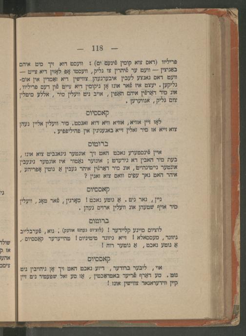 Yulyus Tsezar : eyne isṭorishe ṭrahedishe drama : iber Romaʹr respobliḳe in 5 ershaynungen / ferfasṭ fon dem berihmṭen dikhṭer un dramaṭurg Ṿillyam Sheḳsper ; fray iberzeṭsṭ un bearbeyṭeṭ ins prost yudishen zshargon fon Betsalʾel Ṿishnipolsḳiיוליוס צעזאר : איינע איסטארישע, טראהעדישע דראמא : איבער רומאʹר רעספאבליקע אין 5 ערשיינונגען / פערפאסט פאן דעם בעריהמטען דיכטער אונ דראמאטורג ווילליאם שעקספער ; פרייא איבערזעטצט אונ בעארבייטעט אינס פראסט יודישען זשארגאן פאן בצלאל ווישניפאלסקי