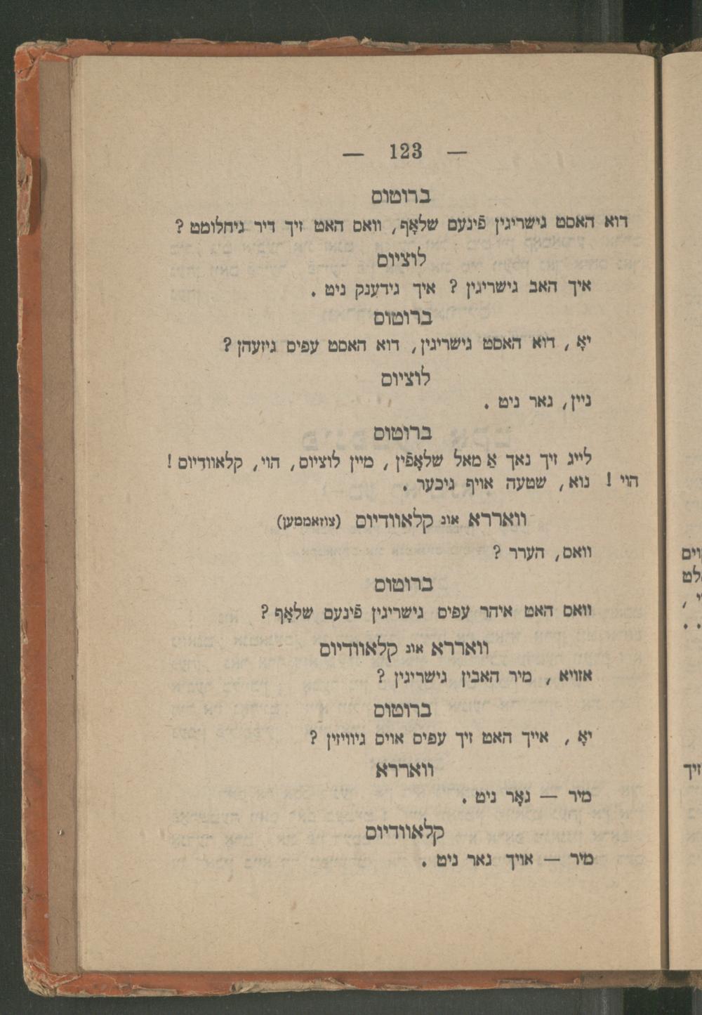 Yulyus Tsezar : eyne isṭorishe ṭrahedishe drama : iber Romaʹr respobliḳe in 5 ershaynungen / ferfasṭ fon dem berihmṭen dikhṭer un dramaṭurg Ṿillyam Sheḳsper ; fray iberzeṭsṭ un bearbeyṭeṭ ins prost yudishen zshargon fon Betsalʾel Ṿishnipolsḳiיוליוס צעזאר : איינע איסטארישע, טראהעדישע דראמא : איבער רומאʹר רעספאבליקע אין 5 ערשיינונגען / פערפאסט פאן דעם בעריהמטען דיכטער אונ דראמאטורג ווילליאם שעקספער ; פרייא איבערזעטצט אונ בעארבייטעט אינס פראסט יודישען זשארגאן פאן בצלאל ווישניפאלסקי
