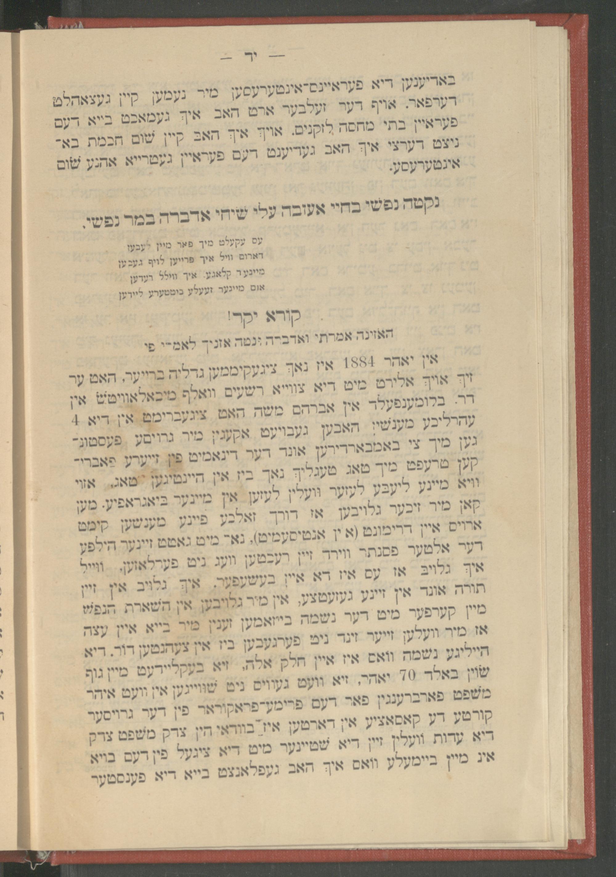 Seyfer zikhroynes̀ : oder, Biografishe beshraybung fin di alṭe layṭ ṿos zenin oyfgenemen geṿoren in Buḳaresṭer azil (bate maḥseh li-zeḳenim) fom yahre 1880 biz ende des yahres 1890 / me-et Yaʿaḳov Pesantir ; des seyfer werd ridikirṭ le-koved dem hisṭorishen farayn "Yulyus Barash" tsu Buḳareshṭספר זכרונות : אדער, ביאגראפישע בעשריבונג פין דיא אלטע לײט װאס זענין אױגענעמען געװארען אין בוקארעסטער אזיל (בתי מחסה לזקנים) פאם יאהרע 1880 ביז ענדע דעס יאהרעס 1890 / מאת יעקב פסנתר ; דאס ספר ווערד רידיקירט לכבוד דעס היסטארישען פעראיין "יוליאס באראש" צו בוקארעשט