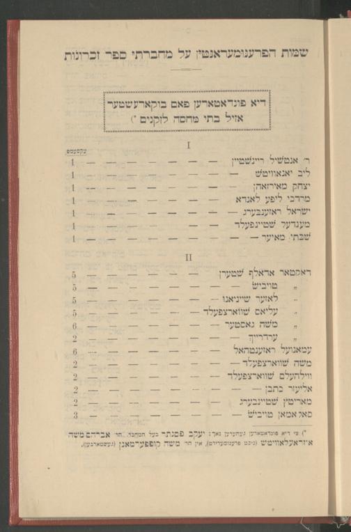 Seyfer zikhroynes̀ : oder, Biografishe beshraybung fin di alṭe layṭ ṿos zenin oyfgenemen geṿoren in Buḳaresṭer azil (bate maḥseh li-zeḳenim) fom yahre 1880 biz ende des yahres 1890 / me-et Yaʿaḳov Pesantir ; des seyfer werd ridikirṭ le-koved dem hisṭorishen farayn "Yulyus Barash" tsu Buḳareshṭספר זכרונות : אדער, ביאגראפישע בעשריבונג פין דיא אלטע לײט װאס זענין אױגענעמען געװארען אין בוקארעסטער אזיל (בתי מחסה לזקנים) פאם יאהרע 1880 ביז ענדע דעס יאהרעס 1890 / מאת יעקב פסנתר ; דאס ספר ווערד רידיקירט לכבוד דעס היסטארישען פעראיין "יוליאס באראש" צו בוקארעשט
