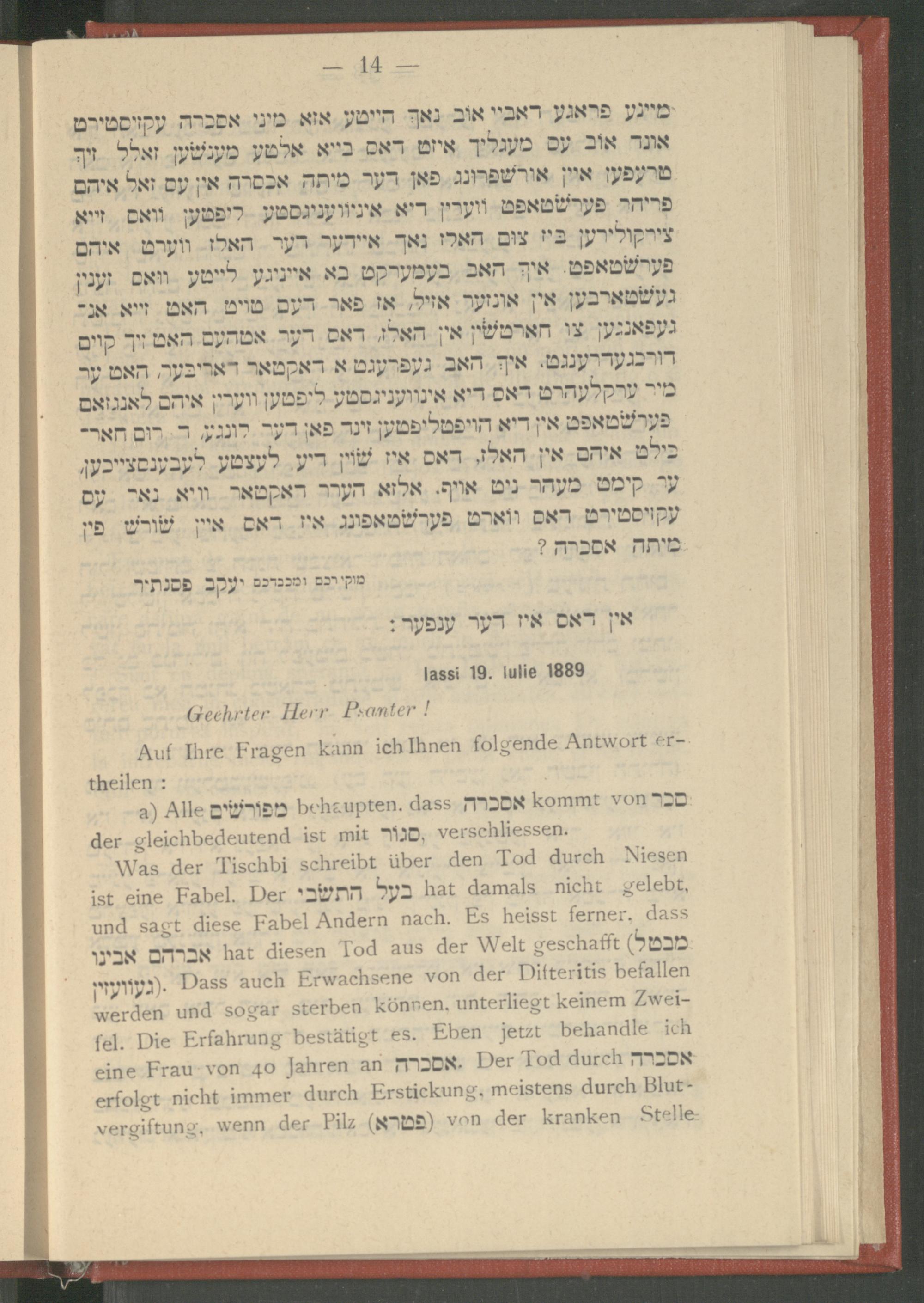 Seyfer zikhroynes̀ : oder, Biografishe beshraybung fin di alṭe layṭ ṿos zenin oyfgenemen geṿoren in Buḳaresṭer azil (bate maḥseh li-zeḳenim) fom yahre 1880 biz ende des yahres 1890 / me-et Yaʿaḳov Pesantir ; des seyfer werd ridikirṭ le-koved dem hisṭorishen farayn "Yulyus Barash" tsu Buḳareshṭספר זכרונות : אדער, ביאגראפישע בעשריבונג פין דיא אלטע לײט װאס זענין אױגענעמען געװארען אין בוקארעסטער אזיל (בתי מחסה לזקנים) פאם יאהרע 1880 ביז ענדע דעס יאהרעס 1890 / מאת יעקב פסנתר ; דאס ספר ווערד רידיקירט לכבוד דעס היסטארישען פעראיין "יוליאס באראש" צו בוקארעשט
