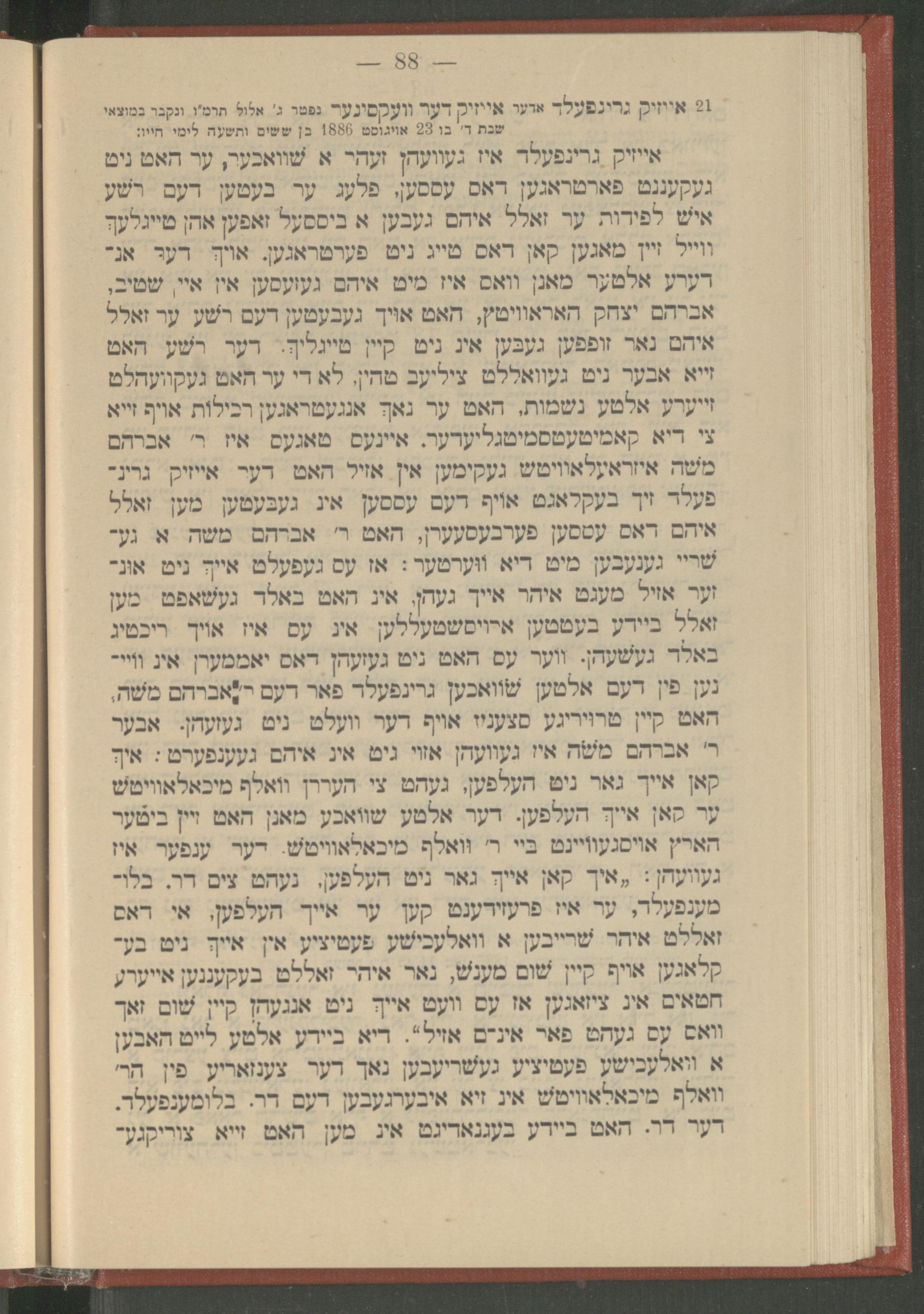 Seyfer zikhroynes̀ : oder, Biografishe beshraybung fin di alṭe layṭ ṿos zenin oyfgenemen geṿoren in Buḳaresṭer azil (bate maḥseh li-zeḳenim) fom yahre 1880 biz ende des yahres 1890 / me-et Yaʿaḳov Pesantir ; des seyfer werd ridikirṭ le-koved dem hisṭorishen farayn "Yulyus Barash" tsu Buḳareshṭספר זכרונות : אדער, ביאגראפישע בעשריבונג פין דיא אלטע לײט װאס זענין אױגענעמען געװארען אין בוקארעסטער אזיל (בתי מחסה לזקנים) פאם יאהרע 1880 ביז ענדע דעס יאהרעס 1890 / מאת יעקב פסנתר ; דאס ספר ווערד רידיקירט לכבוד דעס היסטארישען פעראיין "יוליאס באראש" צו בוקארעשט