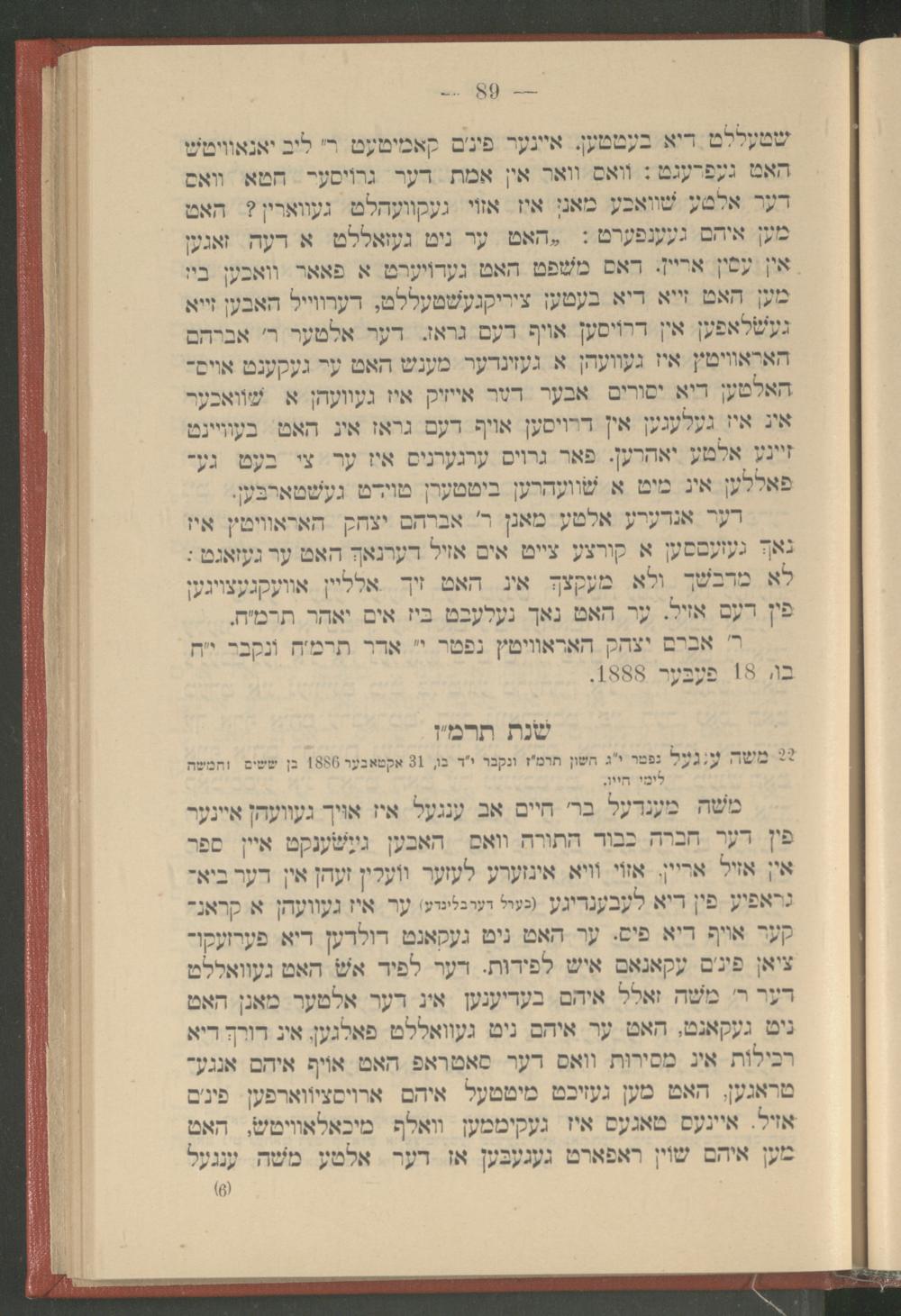 Seyfer zikhroynes̀ : oder, Biografishe beshraybung fin di alṭe layṭ ṿos zenin oyfgenemen geṿoren in Buḳaresṭer azil (bate maḥseh li-zeḳenim) fom yahre 1880 biz ende des yahres 1890 / me-et Yaʿaḳov Pesantir ; des seyfer werd ridikirṭ le-koved dem hisṭorishen farayn "Yulyus Barash" tsu Buḳareshṭספר זכרונות : אדער, ביאגראפישע בעשריבונג פין דיא אלטע לײט װאס זענין אױגענעמען געװארען אין בוקארעסטער אזיל (בתי מחסה לזקנים) פאם יאהרע 1880 ביז ענדע דעס יאהרעס 1890 / מאת יעקב פסנתר ; דאס ספר ווערד רידיקירט לכבוד דעס היסטארישען פעראיין "יוליאס באראש" צו בוקארעשט