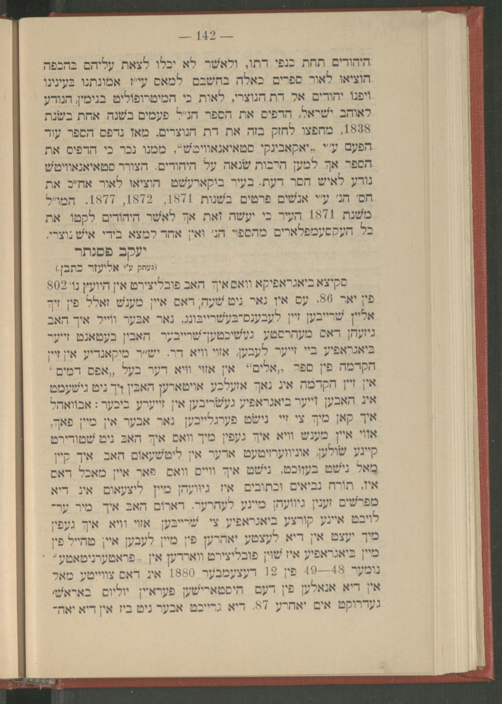 Seyfer zikhroynes̀ : oder, Biografishe beshraybung fin di alṭe layṭ ṿos zenin oyfgenemen geṿoren in Buḳaresṭer azil (bate maḥseh li-zeḳenim) fom yahre 1880 biz ende des yahres 1890 / me-et Yaʿaḳov Pesantir ; des seyfer werd ridikirṭ le-koved dem hisṭorishen farayn "Yulyus Barash" tsu Buḳareshṭספר זכרונות : אדער, ביאגראפישע בעשריבונג פין דיא אלטע לײט װאס זענין אױגענעמען געװארען אין בוקארעסטער אזיל (בתי מחסה לזקנים) פאם יאהרע 1880 ביז ענדע דעס יאהרעס 1890 / מאת יעקב פסנתר ; דאס ספר ווערד רידיקירט לכבוד דעס היסטארישען פעראיין "יוליאס באראש" צו בוקארעשט