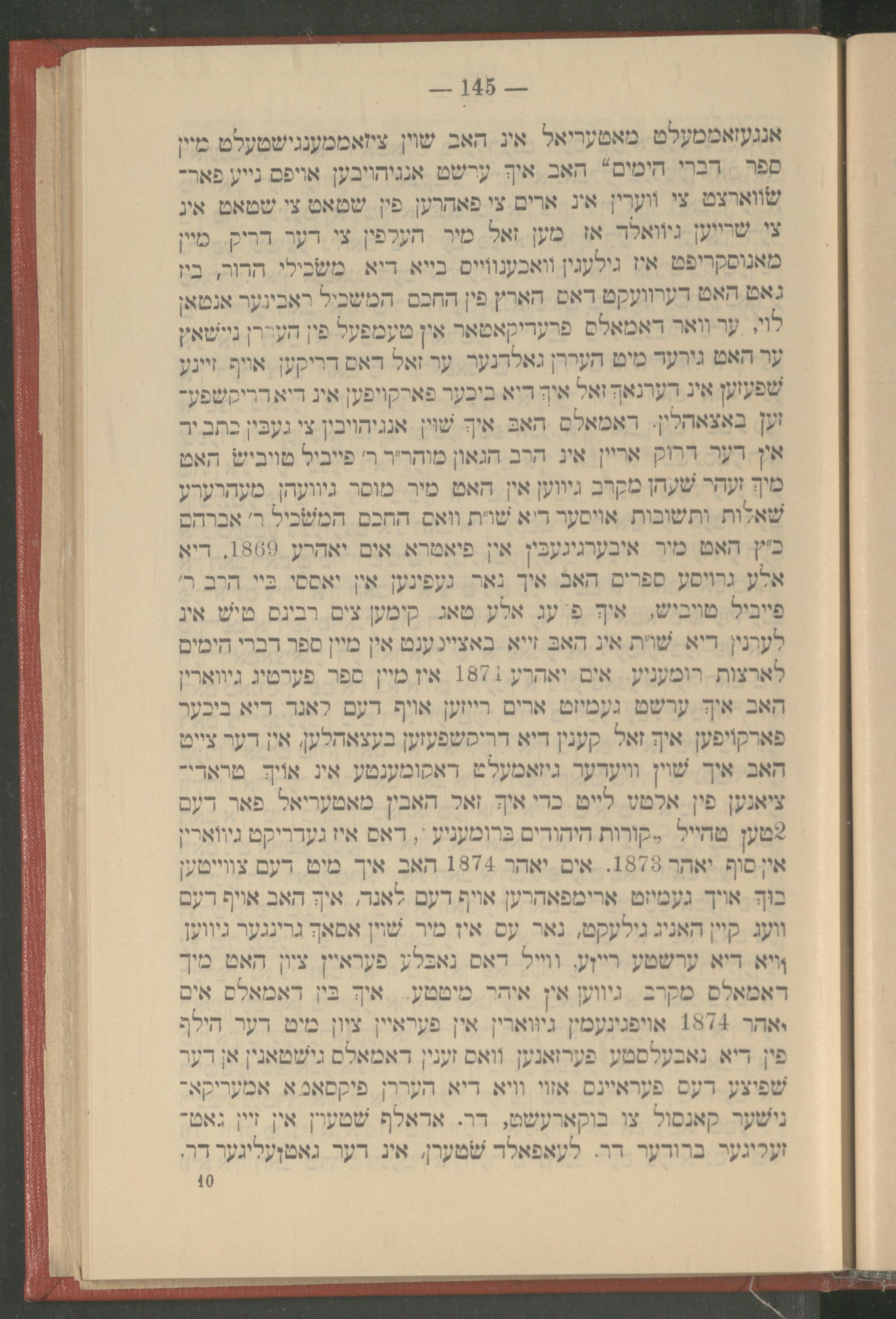 Seyfer zikhroynes̀ : oder, Biografishe beshraybung fin di alṭe layṭ ṿos zenin oyfgenemen geṿoren in Buḳaresṭer azil (bate maḥseh li-zeḳenim) fom yahre 1880 biz ende des yahres 1890 / me-et Yaʿaḳov Pesantir ; des seyfer werd ridikirṭ le-koved dem hisṭorishen farayn "Yulyus Barash" tsu Buḳareshṭספר זכרונות : אדער, ביאגראפישע בעשריבונג פין דיא אלטע לײט װאס זענין אױגענעמען געװארען אין בוקארעסטער אזיל (בתי מחסה לזקנים) פאם יאהרע 1880 ביז ענדע דעס יאהרעס 1890 / מאת יעקב פסנתר ; דאס ספר ווערד רידיקירט לכבוד דעס היסטארישען פעראיין "יוליאס באראש" צו בוקארעשט