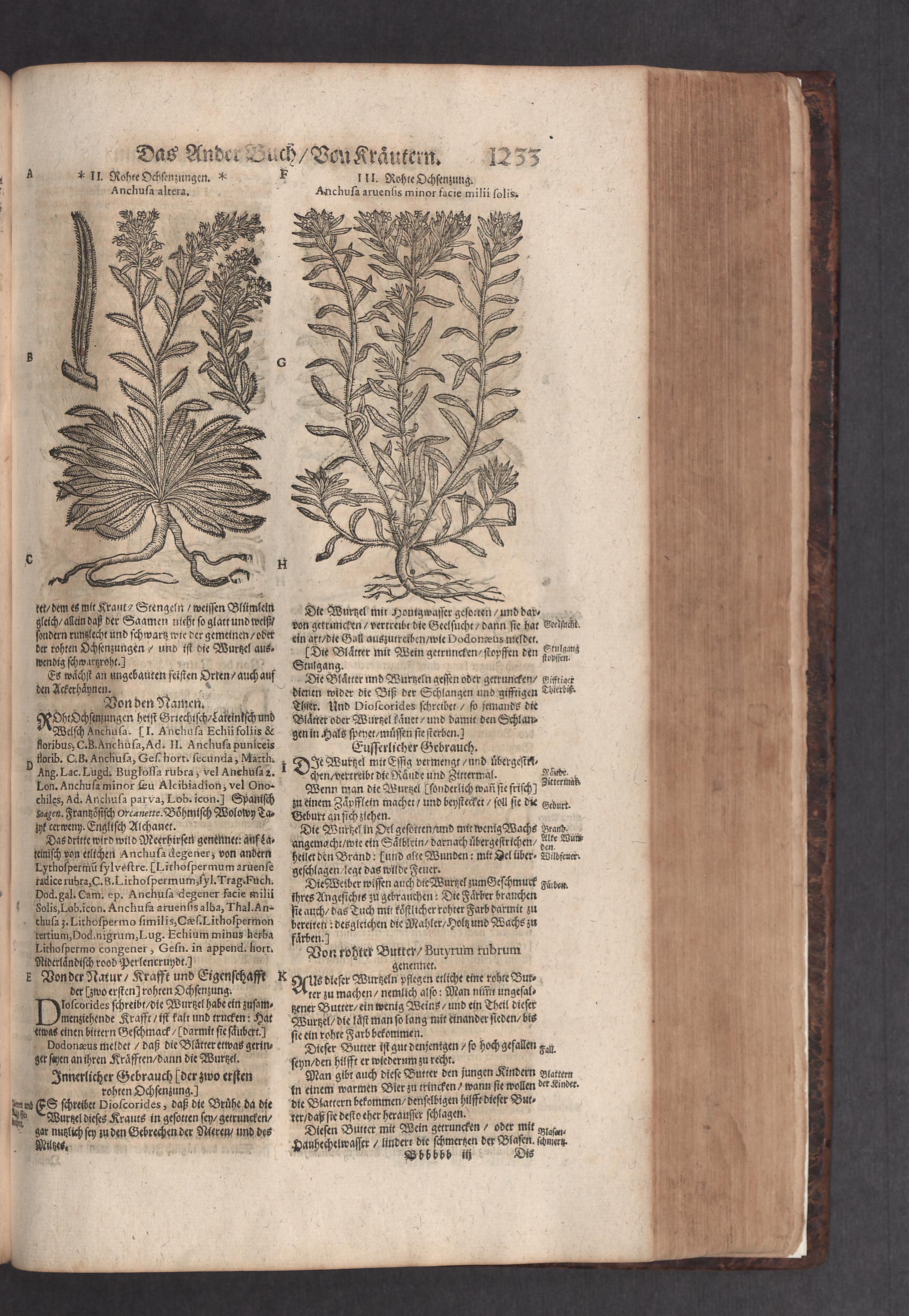 D. Jacobi Theodori Tabernaemontani, Neu vollkommen Kräuter-Buch : Darinnen Uber 3000. Kräuter/ mit schönen und kunstlichen Figuren/ auch deren Underscheid und Würckung/ samt ihren Namen in mancherley Sprachen/ beschrieben: Desgleichen auch/ wie dieselbige in allerhand Kranckheiten/ beyde der Menschen und des Viehs/ sollen angewendet und gebraucht werden/ angezeigt wird. Erstlichen durch Casparum Bauhinum D. und Profess. Basil. mit vielen neuen Figuren/ nutzlichen Artzneyen/ und anderem/ mit sonderem Fleis gebesseret/ Zum Andern Durch Hieronymum Bauhinum D. und Profess. Basil. mit sehr nutzlichen Marginalien, Synonimis, neuen Registeren und anderem vermehrt