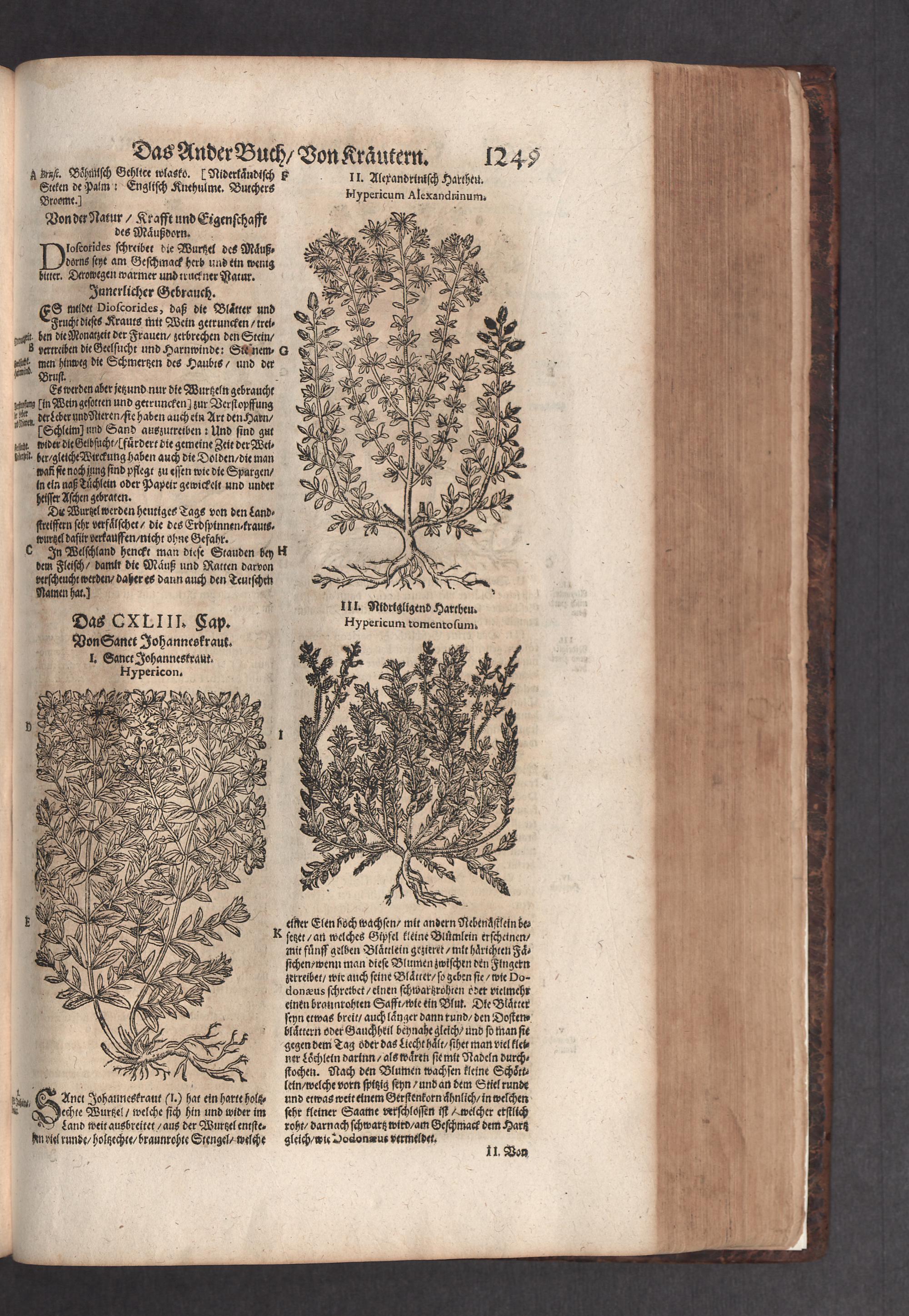 D. Jacobi Theodori Tabernaemontani, Neu vollkommen Kräuter-Buch : Darinnen Uber 3000. Kräuter/ mit schönen und kunstlichen Figuren/ auch deren Underscheid und Würckung/ samt ihren Namen in mancherley Sprachen/ beschrieben: Desgleichen auch/ wie dieselbige in allerhand Kranckheiten/ beyde der Menschen und des Viehs/ sollen angewendet und gebraucht werden/ angezeigt wird. Erstlichen durch Casparum Bauhinum D. und Profess. Basil. mit vielen neuen Figuren/ nutzlichen Artzneyen/ und anderem/ mit sonderem Fleis gebesseret/ Zum Andern Durch Hieronymum Bauhinum D. und Profess. Basil. mit sehr nutzlichen Marginalien, Synonimis, neuen Registeren und anderem vermehrt