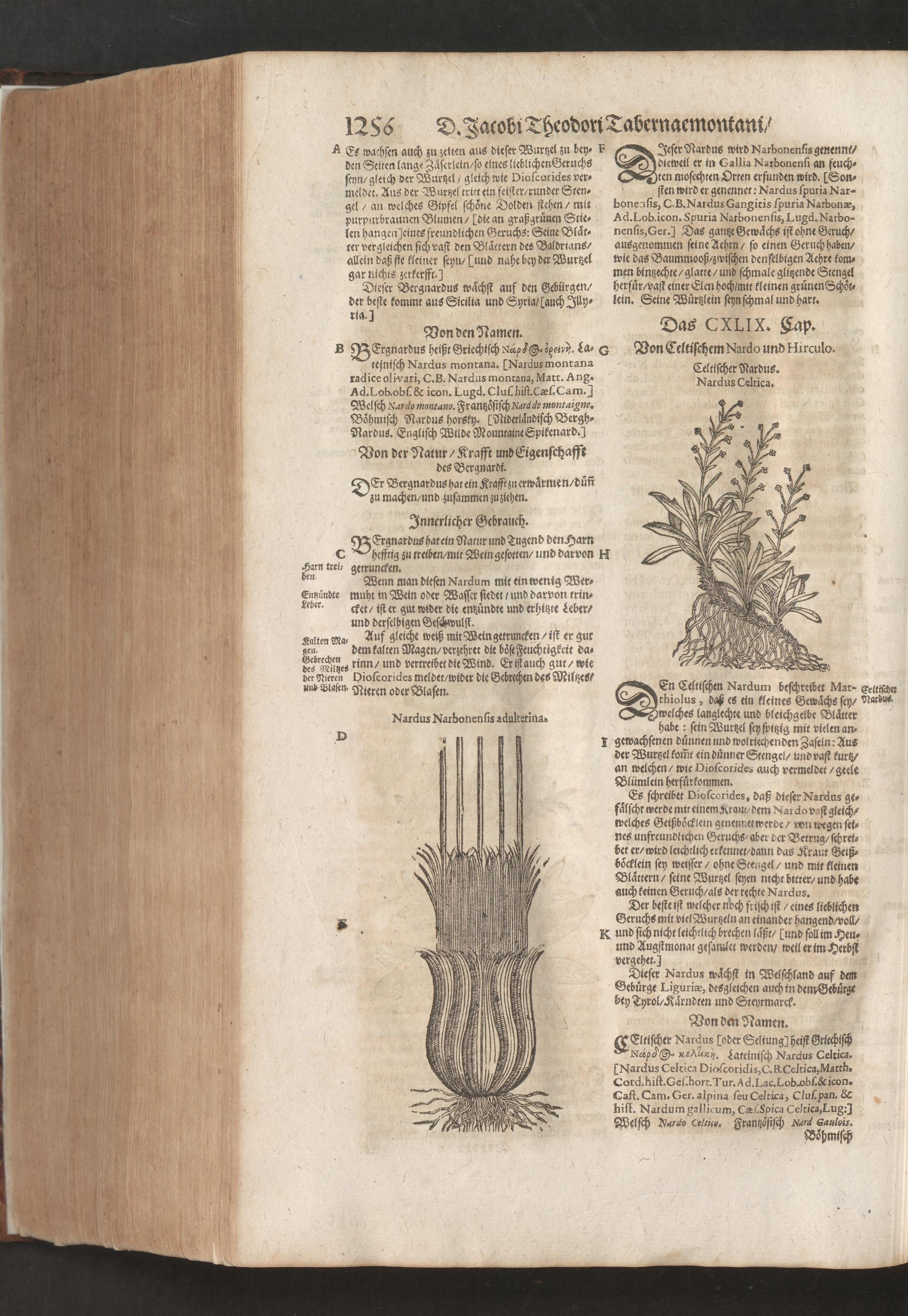 D. Jacobi Theodori Tabernaemontani, Neu vollkommen Kräuter-Buch : Darinnen Uber 3000. Kräuter/ mit schönen und kunstlichen Figuren/ auch deren Underscheid und Würckung/ samt ihren Namen in mancherley Sprachen/ beschrieben: Desgleichen auch/ wie dieselbige in allerhand Kranckheiten/ beyde der Menschen und des Viehs/ sollen angewendet und gebraucht werden/ angezeigt wird. Erstlichen durch Casparum Bauhinum D. und Profess. Basil. mit vielen neuen Figuren/ nutzlichen Artzneyen/ und anderem/ mit sonderem Fleis gebesseret/ Zum Andern Durch Hieronymum Bauhinum D. und Profess. Basil. mit sehr nutzlichen Marginalien, Synonimis, neuen Registeren und anderem vermehrt