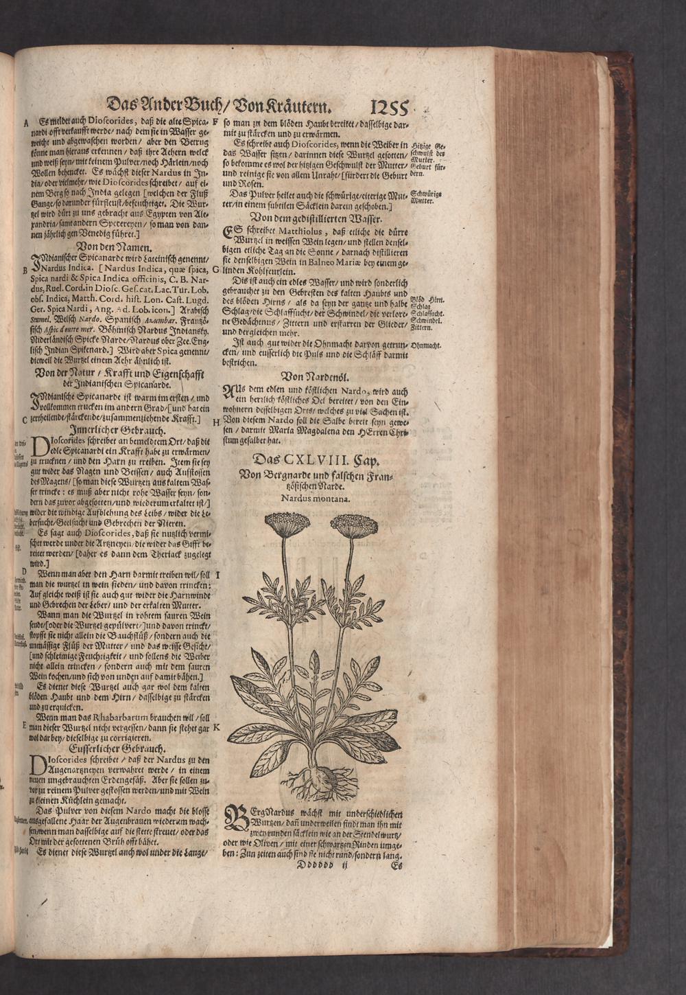 D. Jacobi Theodori Tabernaemontani, Neu vollkommen Kräuter-Buch : Darinnen Uber 3000. Kräuter/ mit schönen und kunstlichen Figuren/ auch deren Underscheid und Würckung/ samt ihren Namen in mancherley Sprachen/ beschrieben: Desgleichen auch/ wie dieselbige in allerhand Kranckheiten/ beyde der Menschen und des Viehs/ sollen angewendet und gebraucht werden/ angezeigt wird. Erstlichen durch Casparum Bauhinum D. und Profess. Basil. mit vielen neuen Figuren/ nutzlichen Artzneyen/ und anderem/ mit sonderem Fleis gebesseret/ Zum Andern Durch Hieronymum Bauhinum D. und Profess. Basil. mit sehr nutzlichen Marginalien, Synonimis, neuen Registeren und anderem vermehrt
