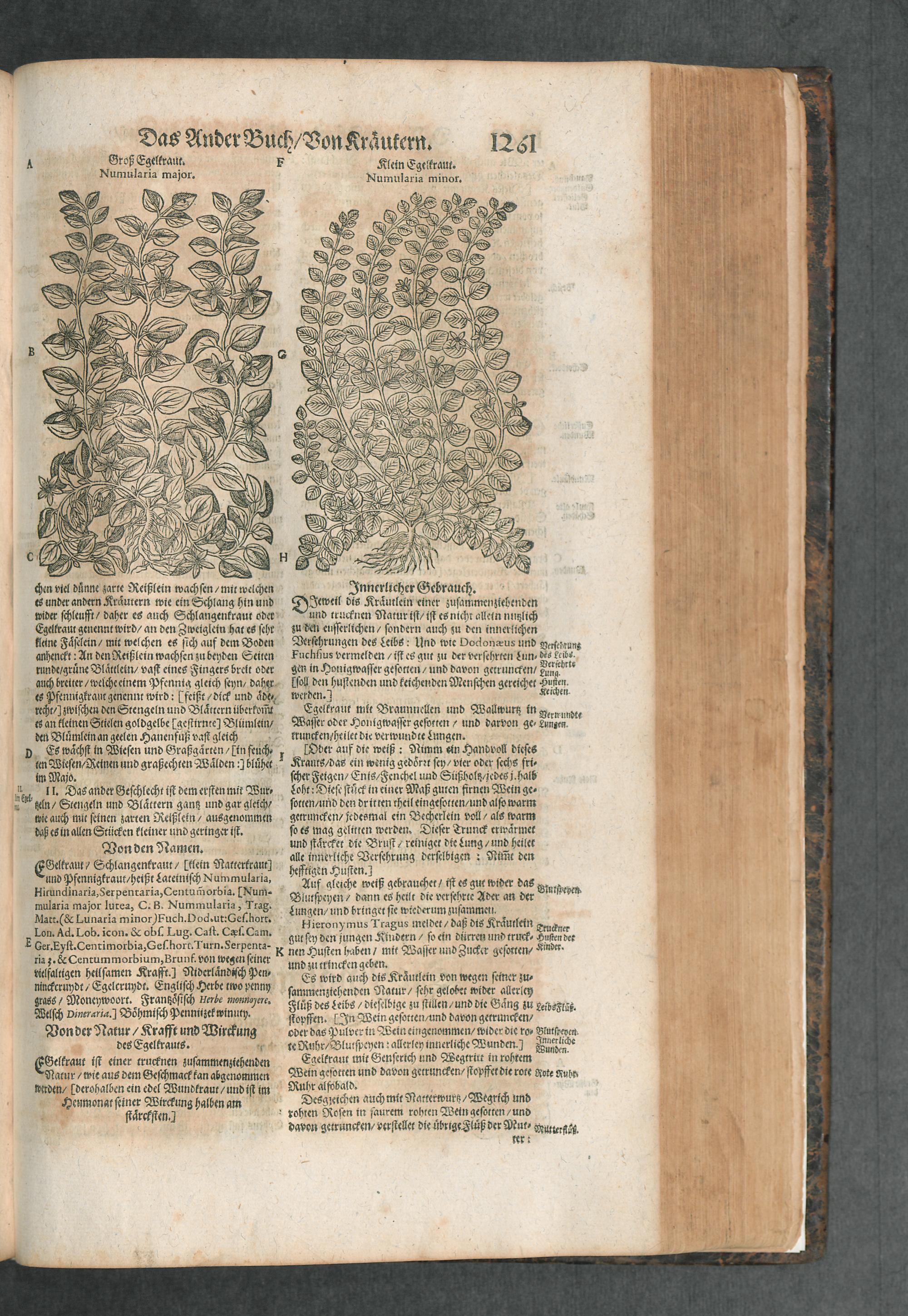 D. Jacobi Theodori Tabernaemontani, Neu vollkommen Kräuter-Buch : Darinnen Uber 3000. Kräuter/ mit schönen und kunstlichen Figuren/ auch deren Underscheid und Würckung/ samt ihren Namen in mancherley Sprachen/ beschrieben: Desgleichen auch/ wie dieselbige in allerhand Kranckheiten/ beyde der Menschen und des Viehs/ sollen angewendet und gebraucht werden/ angezeigt wird. Erstlichen durch Casparum Bauhinum D. und Profess. Basil. mit vielen neuen Figuren/ nutzlichen Artzneyen/ und anderem/ mit sonderem Fleis gebesseret/ Zum Andern Durch Hieronymum Bauhinum D. und Profess. Basil. mit sehr nutzlichen Marginalien, Synonimis, neuen Registeren und anderem vermehrt
