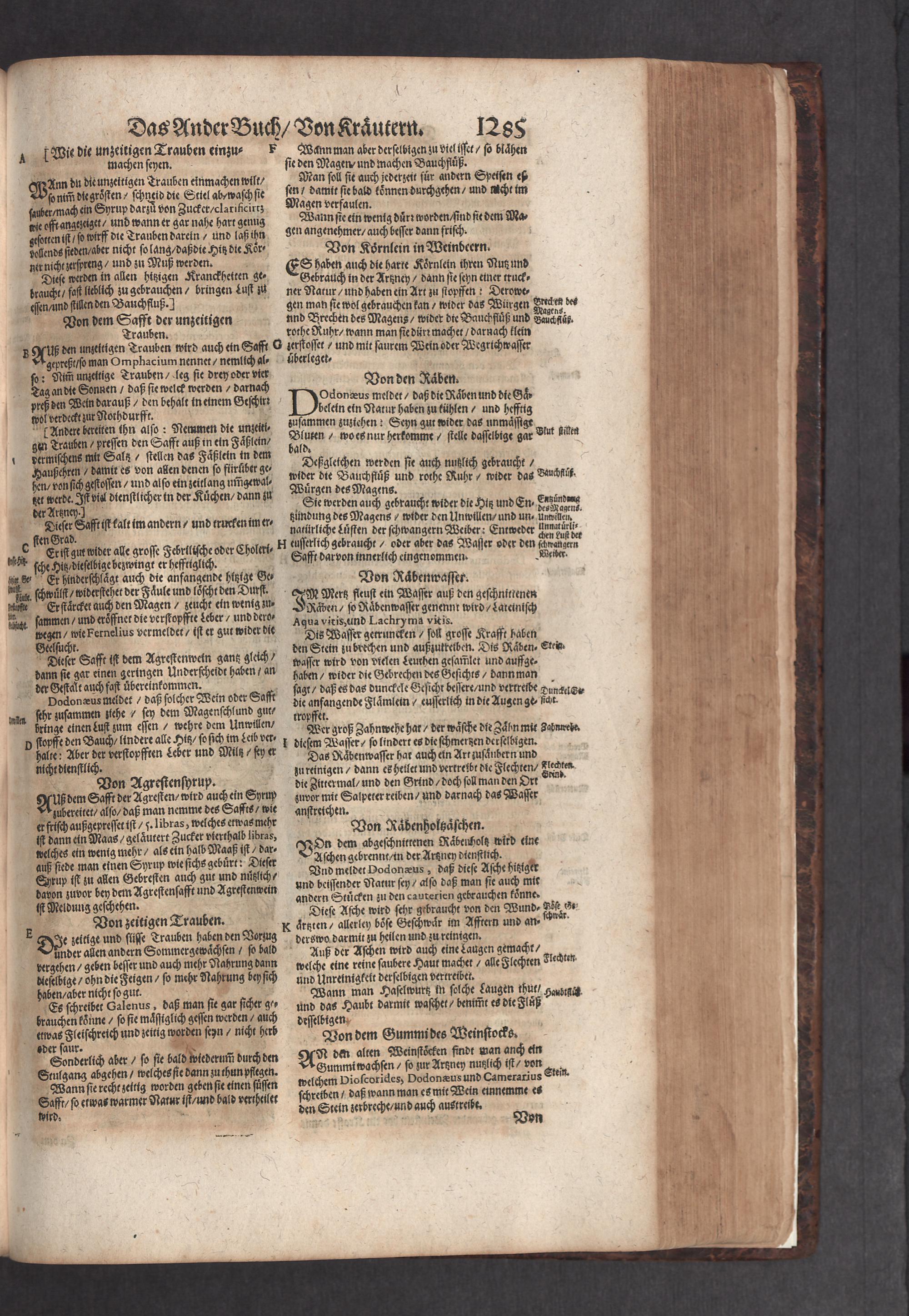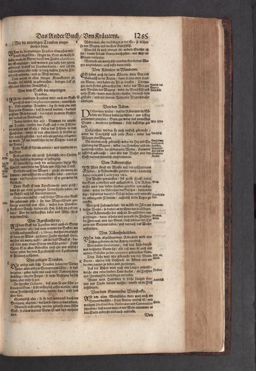 D. Jacobi Theodori Tabernaemontani, Neu vollkommen Kräuter-Buch : Darinnen Uber 3000. Kräuter/ mit schönen und kunstlichen Figuren/ auch deren Underscheid und Würckung/ samt ihren Namen in mancherley Sprachen/ beschrieben: Desgleichen auch/ wie dieselbige in allerhand Kranckheiten/ beyde der Menschen und des Viehs/ sollen angewendet und gebraucht werden/ angezeigt wird. Erstlichen durch Casparum Bauhinum D. und Profess. Basil. mit vielen neuen Figuren/ nutzlichen Artzneyen/ und anderem/ mit sonderem Fleis gebesseret/ Zum Andern Durch Hieronymum Bauhinum D. und Profess. Basil. mit sehr nutzlichen Marginalien, Synonimis, neuen Registeren und anderem vermehrt