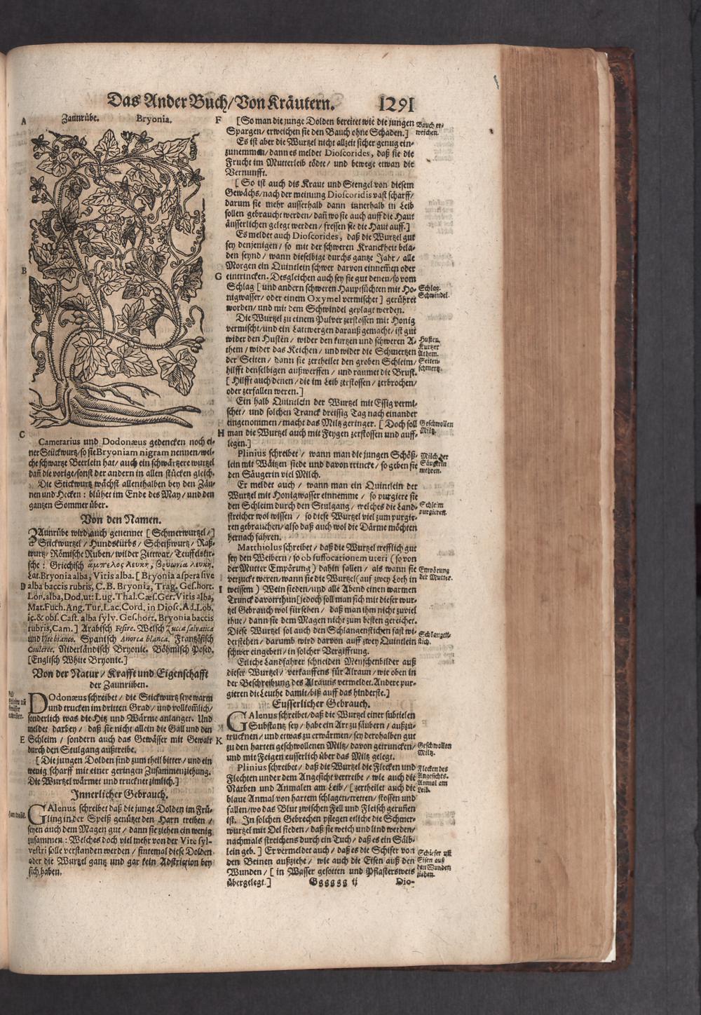 D. Jacobi Theodori Tabernaemontani, Neu vollkommen Kräuter-Buch : Darinnen Uber 3000. Kräuter/ mit schönen und kunstlichen Figuren/ auch deren Underscheid und Würckung/ samt ihren Namen in mancherley Sprachen/ beschrieben: Desgleichen auch/ wie dieselbige in allerhand Kranckheiten/ beyde der Menschen und des Viehs/ sollen angewendet und gebraucht werden/ angezeigt wird. Erstlichen durch Casparum Bauhinum D. und Profess. Basil. mit vielen neuen Figuren/ nutzlichen Artzneyen/ und anderem/ mit sonderem Fleis gebesseret/ Zum Andern Durch Hieronymum Bauhinum D. und Profess. Basil. mit sehr nutzlichen Marginalien, Synonimis, neuen Registeren und anderem vermehrt
