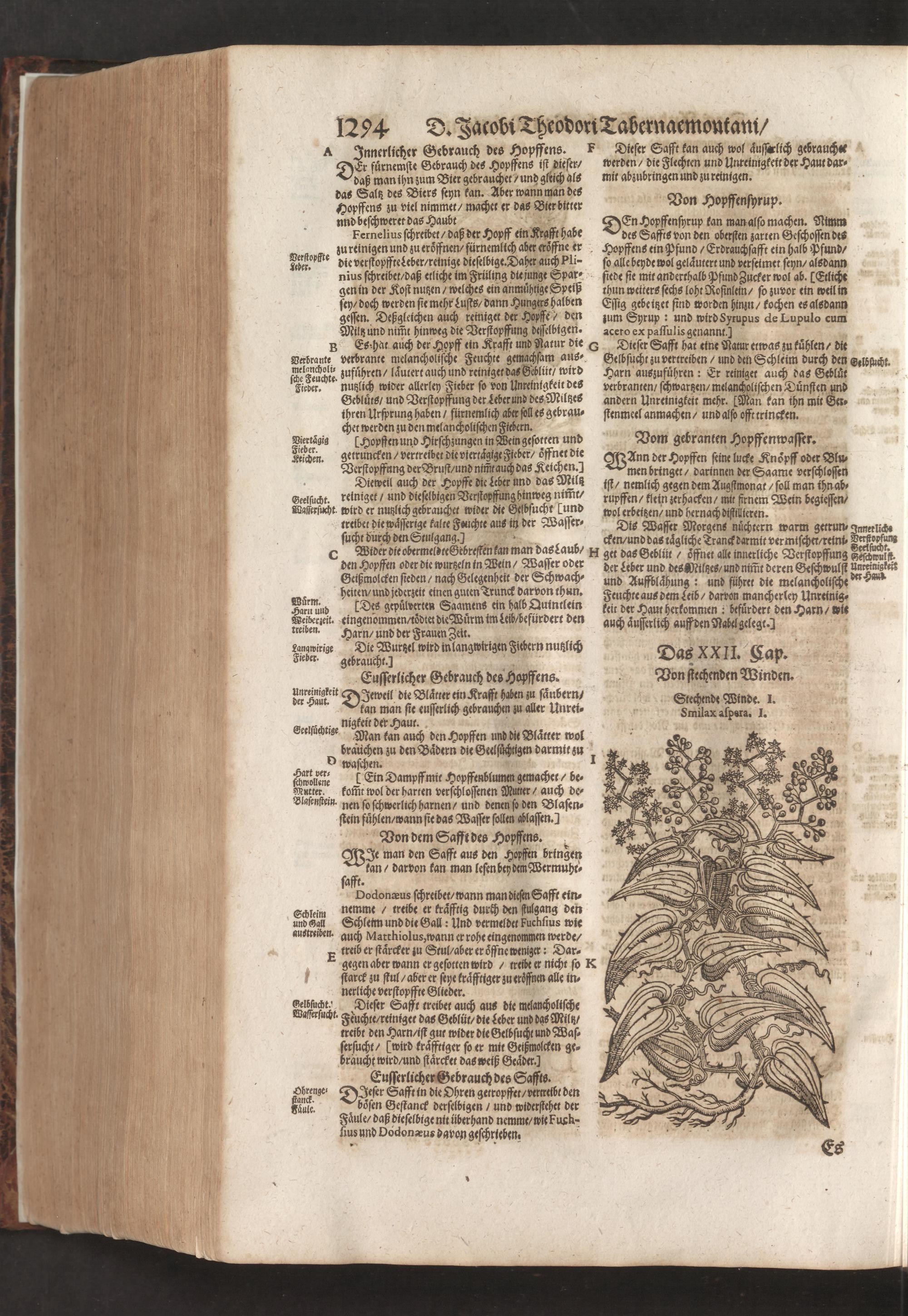 D. Jacobi Theodori Tabernaemontani, Neu vollkommen Kräuter-Buch : Darinnen Uber 3000. Kräuter/ mit schönen und kunstlichen Figuren/ auch deren Underscheid und Würckung/ samt ihren Namen in mancherley Sprachen/ beschrieben: Desgleichen auch/ wie dieselbige in allerhand Kranckheiten/ beyde der Menschen und des Viehs/ sollen angewendet und gebraucht werden/ angezeigt wird. Erstlichen durch Casparum Bauhinum D. und Profess. Basil. mit vielen neuen Figuren/ nutzlichen Artzneyen/ und anderem/ mit sonderem Fleis gebesseret/ Zum Andern Durch Hieronymum Bauhinum D. und Profess. Basil. mit sehr nutzlichen Marginalien, Synonimis, neuen Registeren und anderem vermehrt