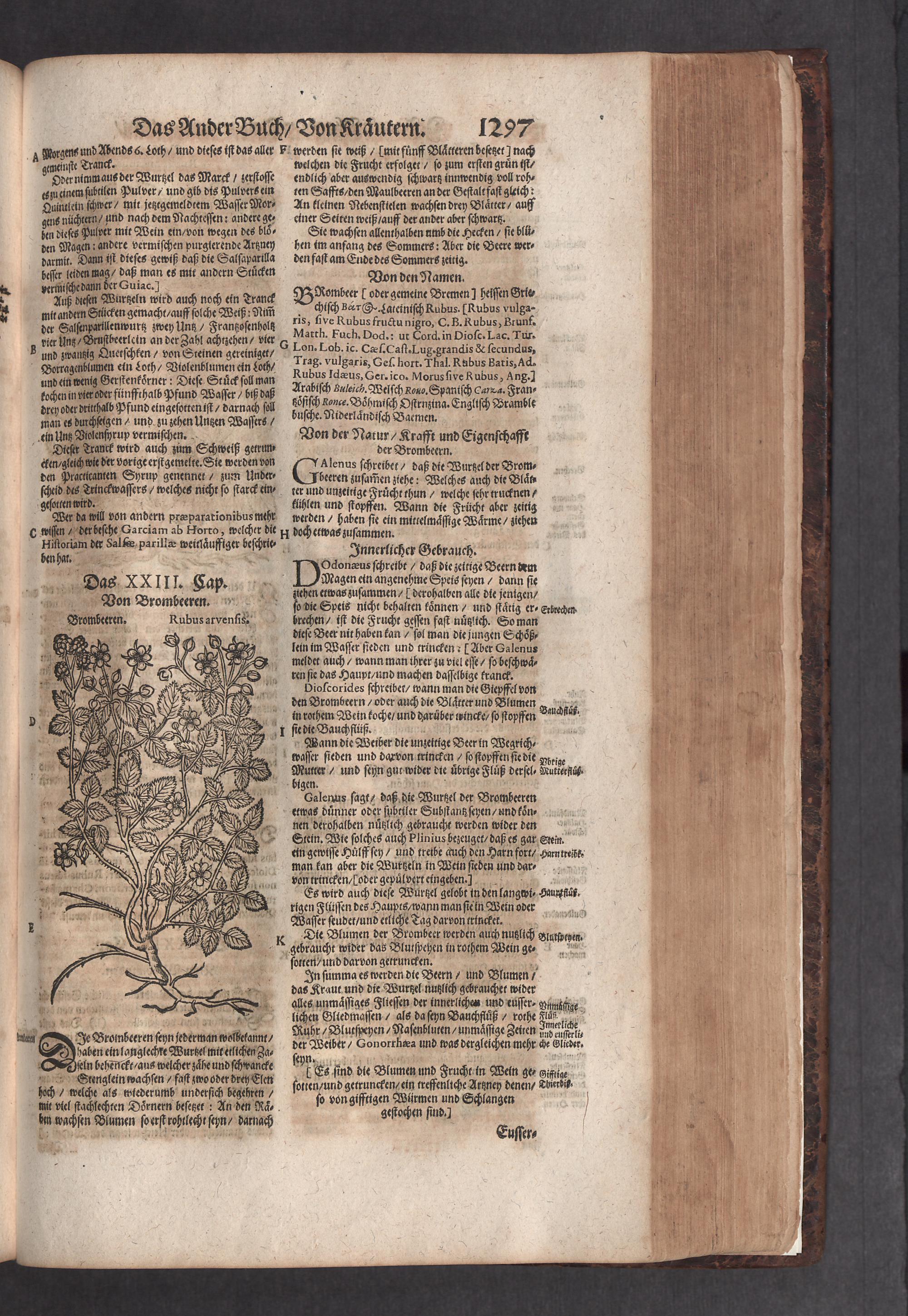 D. Jacobi Theodori Tabernaemontani, Neu vollkommen Kräuter-Buch : Darinnen Uber 3000. Kräuter/ mit schönen und kunstlichen Figuren/ auch deren Underscheid und Würckung/ samt ihren Namen in mancherley Sprachen/ beschrieben: Desgleichen auch/ wie dieselbige in allerhand Kranckheiten/ beyde der Menschen und des Viehs/ sollen angewendet und gebraucht werden/ angezeigt wird. Erstlichen durch Casparum Bauhinum D. und Profess. Basil. mit vielen neuen Figuren/ nutzlichen Artzneyen/ und anderem/ mit sonderem Fleis gebesseret/ Zum Andern Durch Hieronymum Bauhinum D. und Profess. Basil. mit sehr nutzlichen Marginalien, Synonimis, neuen Registeren und anderem vermehrt