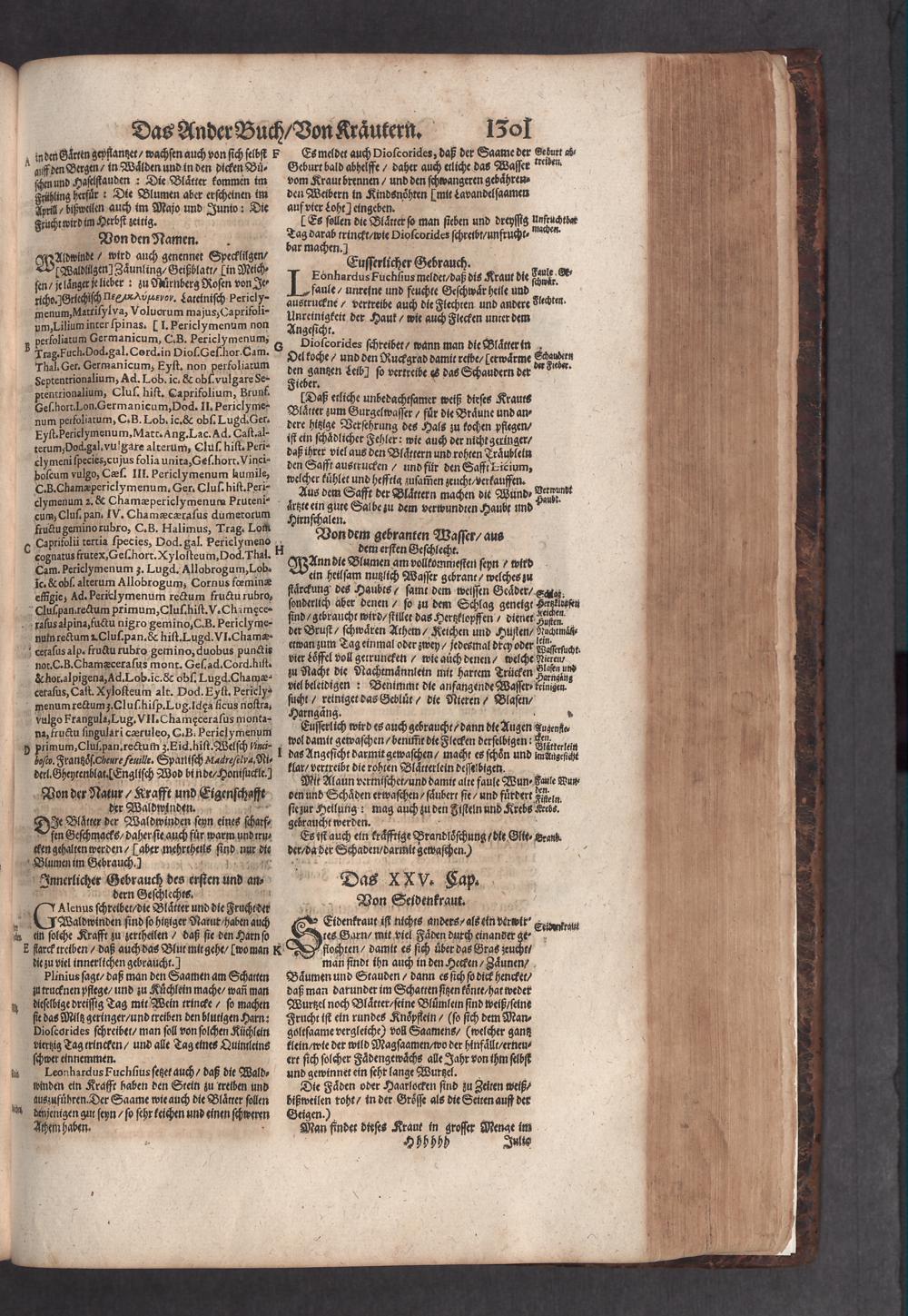 D. Jacobi Theodori Tabernaemontani, Neu vollkommen Kräuter-Buch : Darinnen Uber 3000. Kräuter/ mit schönen und kunstlichen Figuren/ auch deren Underscheid und Würckung/ samt ihren Namen in mancherley Sprachen/ beschrieben: Desgleichen auch/ wie dieselbige in allerhand Kranckheiten/ beyde der Menschen und des Viehs/ sollen angewendet und gebraucht werden/ angezeigt wird. Erstlichen durch Casparum Bauhinum D. und Profess. Basil. mit vielen neuen Figuren/ nutzlichen Artzneyen/ und anderem/ mit sonderem Fleis gebesseret/ Zum Andern Durch Hieronymum Bauhinum D. und Profess. Basil. mit sehr nutzlichen Marginalien, Synonimis, neuen Registeren und anderem vermehrt